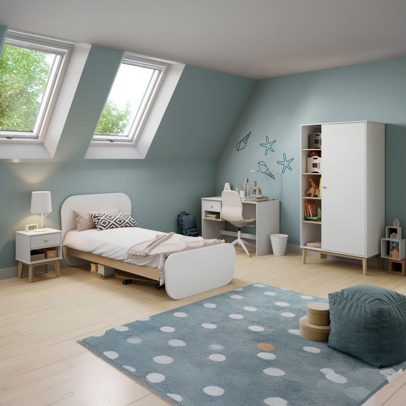 - Os puxadores arredondados proporcionam segurança e estilo extra, perfeitos para a utilização por crianças. Todos os detalhes foram pensados para garantir estabilidade, funcionalidade e uma estética harmoniosa que acompanhará o crescimento do utilizador durante anos.