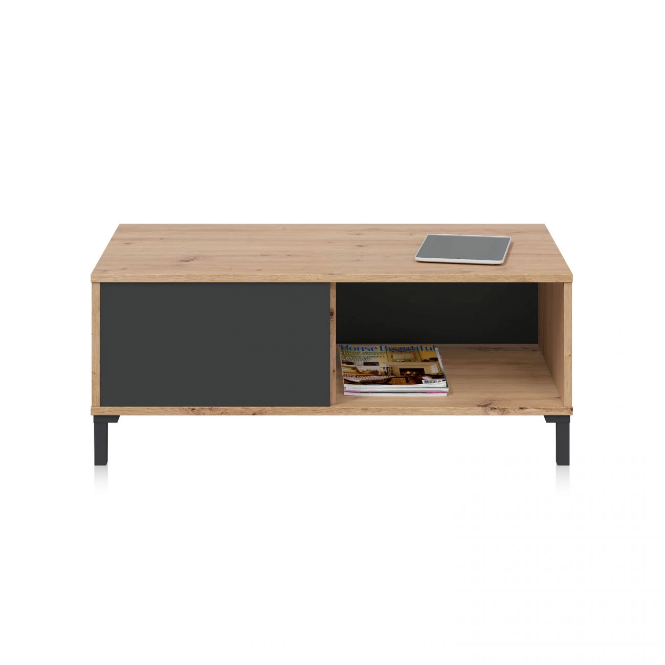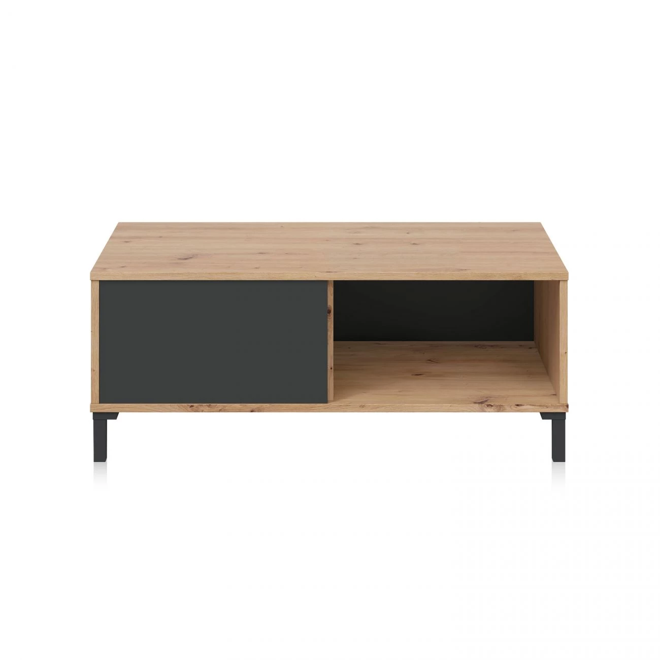 - Esta mesa possui uma gaveta frontal integrada, ideal para manter a área de estar arrumada. Este compartimento é perfeito para guardar telecomandos, blocos de notas, carregadores ou pequenos acessórios, mantendo tudo à mão, mas fora da vista. Ao lado, a mesa oferece uma prateleira aberta muito acessível, ideal para livros, revistas, tabuleiros ou pormenores decorativos, acrescentando um toque de estilo pessoal e praticidade ao espaço.