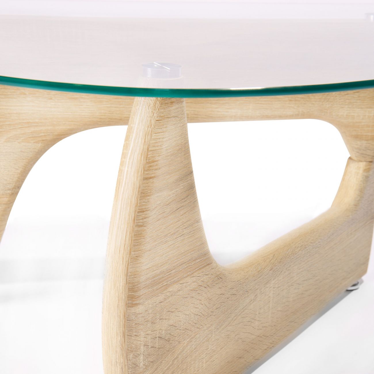 - A mesa de centro Lena é uma fantástica mesa de apoio para salas de estar e salas de espera que combina um estilo rústico com um toque moderno. Uma peça de mobiliário com um design único que se destaca pela sua forma oval com uma mistura de vidro e estrutura com acabamento em laminado com aspeto de carvalho .