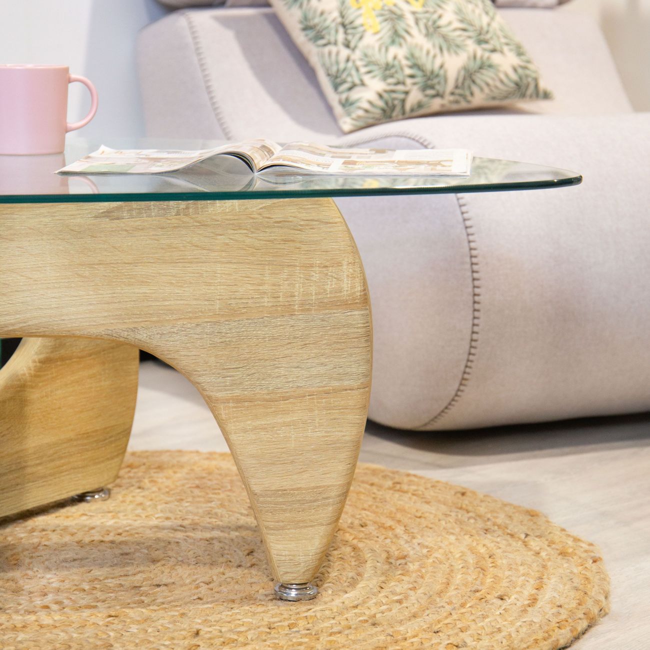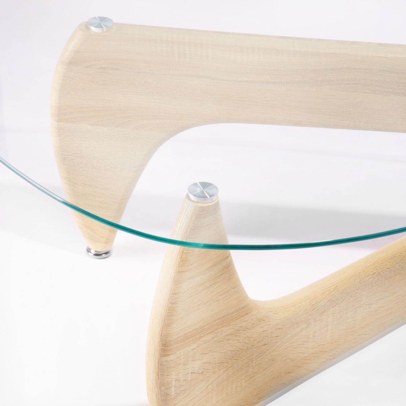 - Materiais:Vidro temperado e pés com acabamento em madeira de carvalho