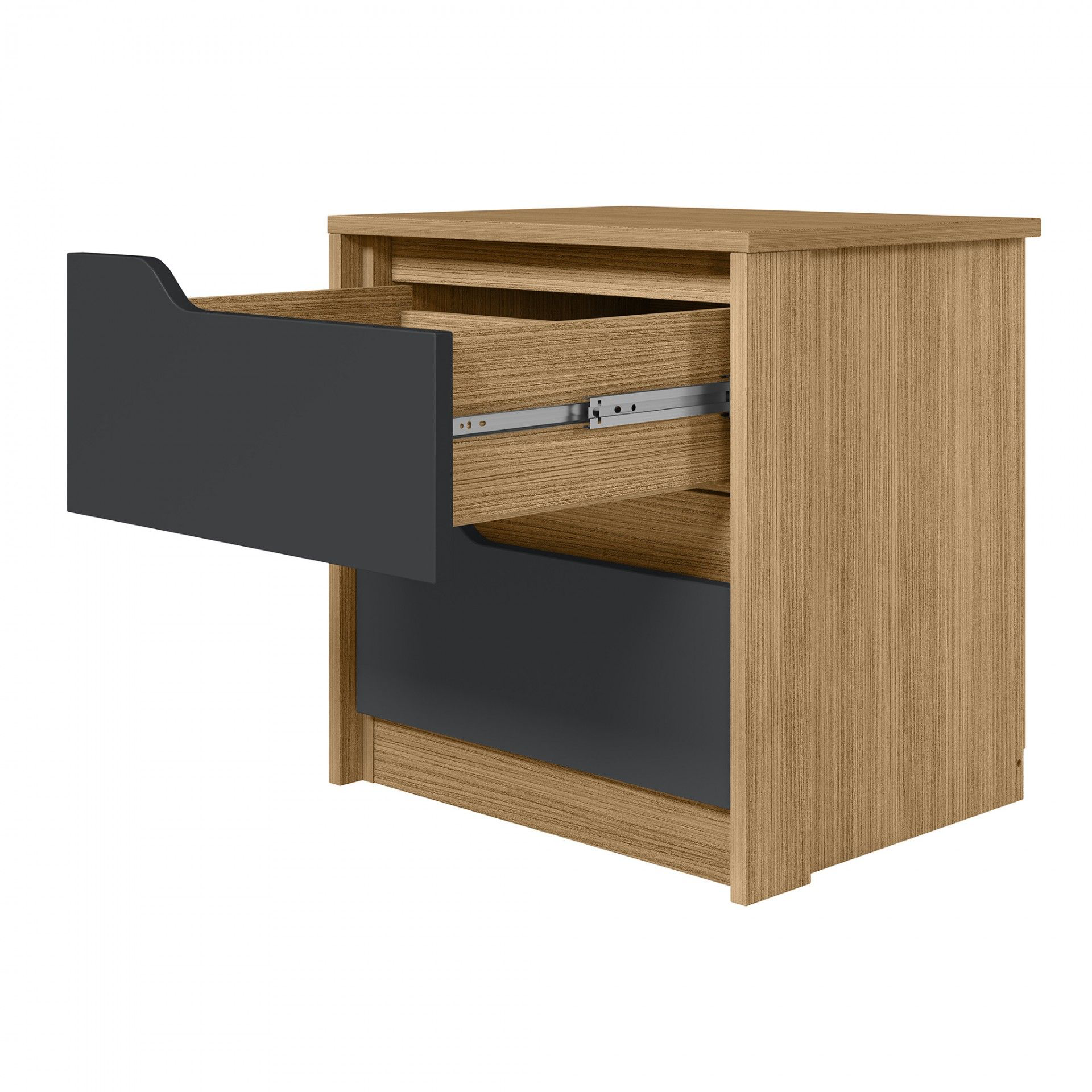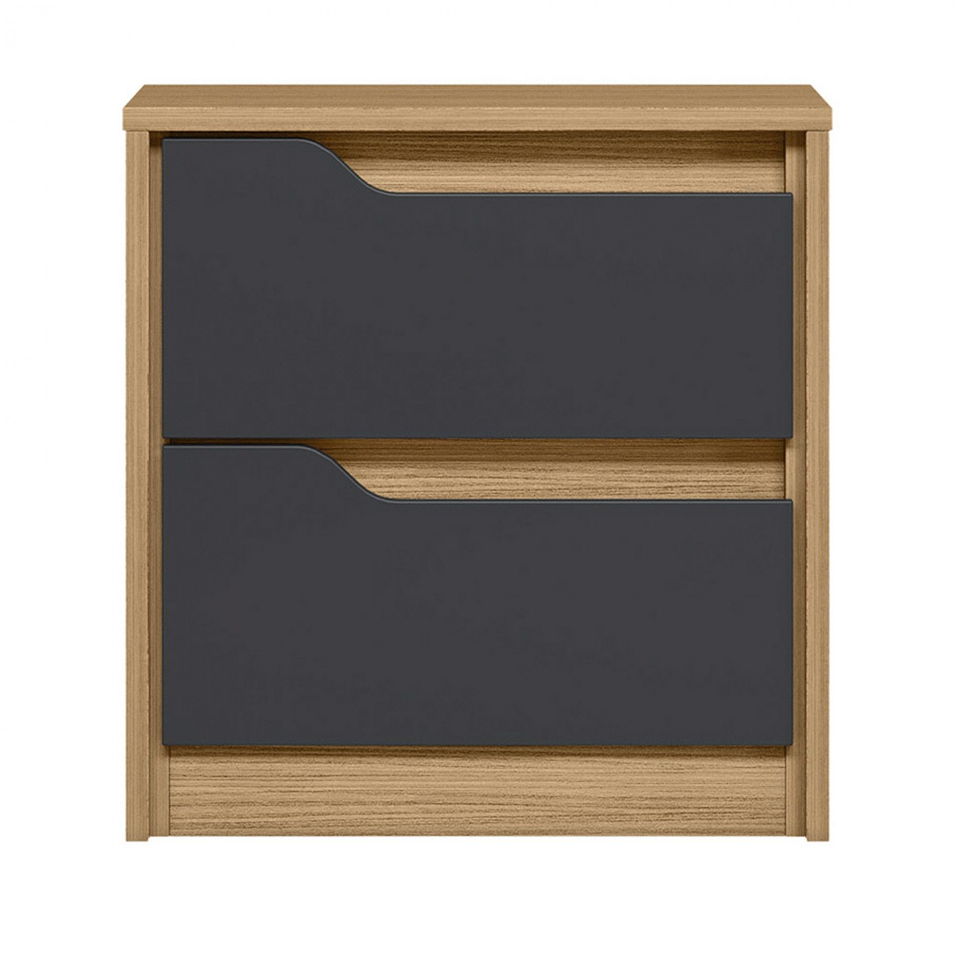 A gama Evo para arrumação pode ser integrada em diferentes estilos decorativos: possui um design moderno e simples, com estrutura em tom de carvalho e frentes de gavetas em cores neutras com atraentes puxadores embutidos, que são a imagem de marca da gama