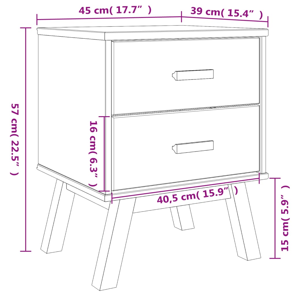 - Madeira de pinho maciça: a madeira de pinho maciça é um bonito material natural. A madeira de pinho possui um grão reto e os nós conferem ao material o seu aspeto rústico. Feita de pinho maciço, a mesa de cabeceira é resistente e estável.