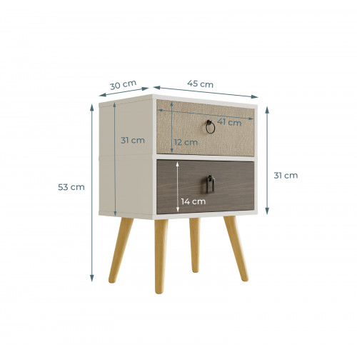 As pernas cônicas inclinadas de cor de madeira clara não apenas fornecem estabilidade, mas também oferecem uma aparência elegante em um estilo escandinavo muito moderno. Uma combinação de cores neutras que se adapta a qualquer estilo de decoração.