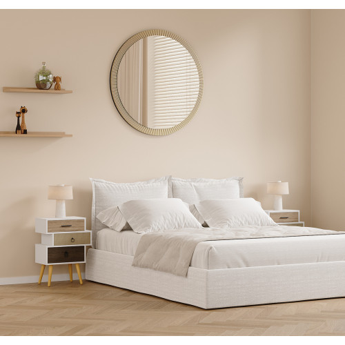 As pernas cônicas inclinadas de cor de madeira clara não apenas fornecem estabilidade, mas também oferecem uma aparência elegante em um estilo escandinavo muito moderno. Uma combinação de cores neutras que se adapta a qualquer estilo de decoração.