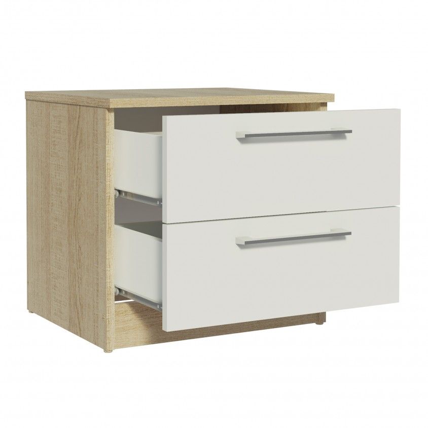 - Caixa de cor carvalho com 2 gavetas na cor branco