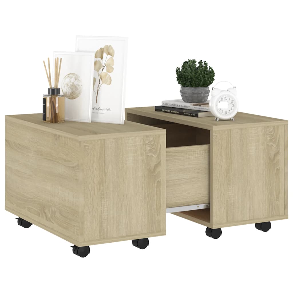 Acrescente um toque de charme ao seu interior com esta elegante mesa de centro.A mesa de apoio ao sofá é feita de contraplacado, o que assegura a sua robustez, durabilidade e serviço duradouro. Esta mesa decorativa pode ser estendida de ambos os lados, oferecendo um amplo espaço para manter as suas revistas, livros, controlo remoto e vários pequenos artigos ao seu alcance. Graças às rodas, a mesa de centro é fácil de deslocar. É fácil de limpar com um pano húmido.