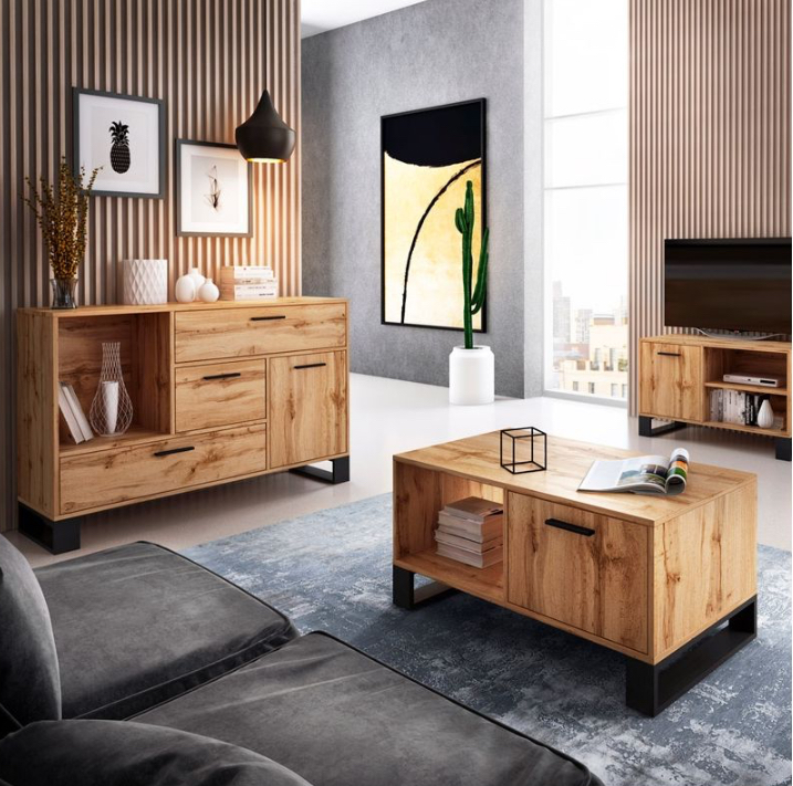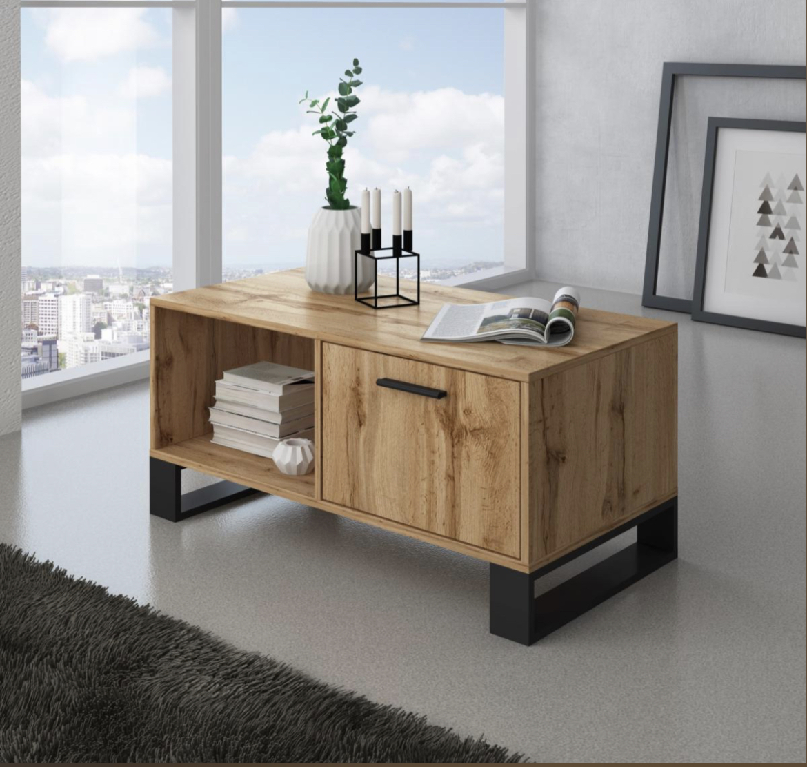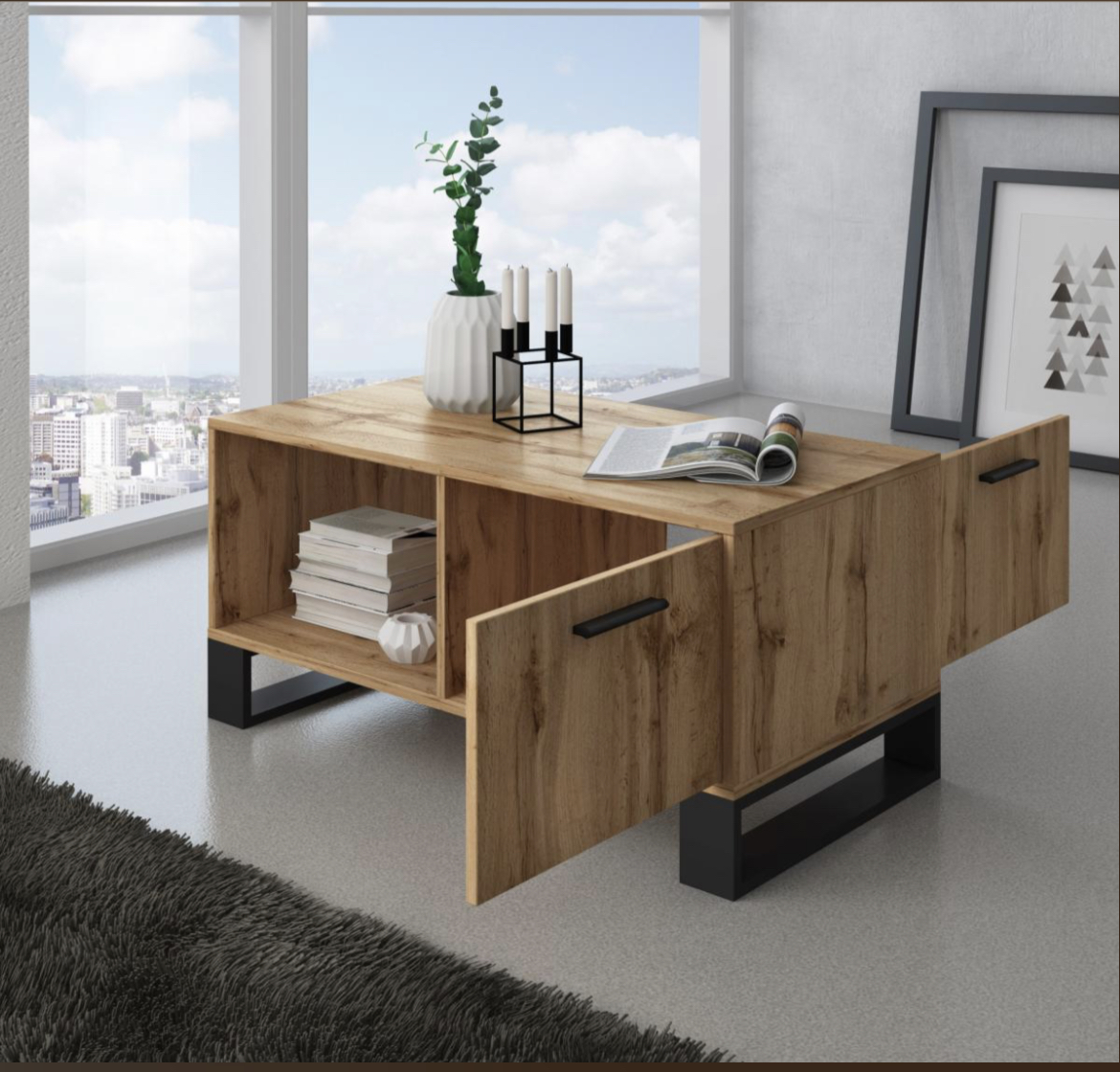 É uma mesa de centro fixa (não extensível nem elevatória) num estilo industrial, com um acabamento muito moderno. É uma mesa que vai dar muita personalidade à sua sala de estar, ao mesmo tempo que lhe oferece espaço para guardar aqueles objectos que precisa de ter sempre à mão.