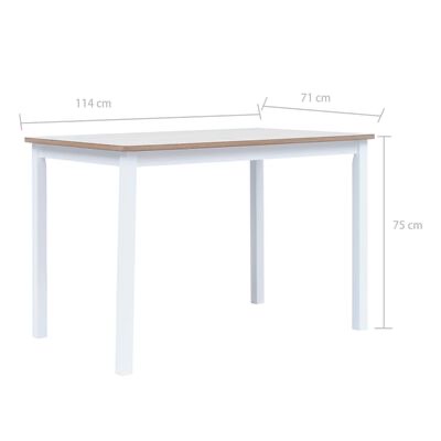 Feita em madeira de seringueira maciça, a estrutura da mesa é extremamente durável e resistente. O tampo da mesa é feito em MDF, proporcionando um local estável para fazer as suas refeições. Graças ao acabamento polido, pintado e envernizado, a mesa de jantar é fácil de limpar com um pano húmido. A elegância simples desta mesa de jantar tornará os jantares diários especiais.