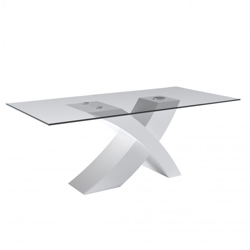 - Mesa com base lacada em branco com acabamento brilhante.