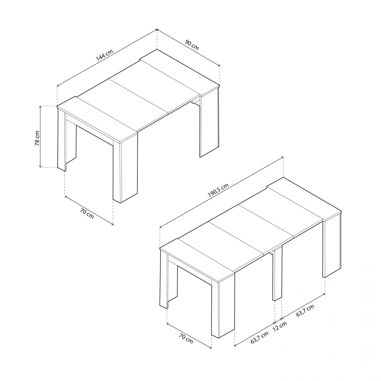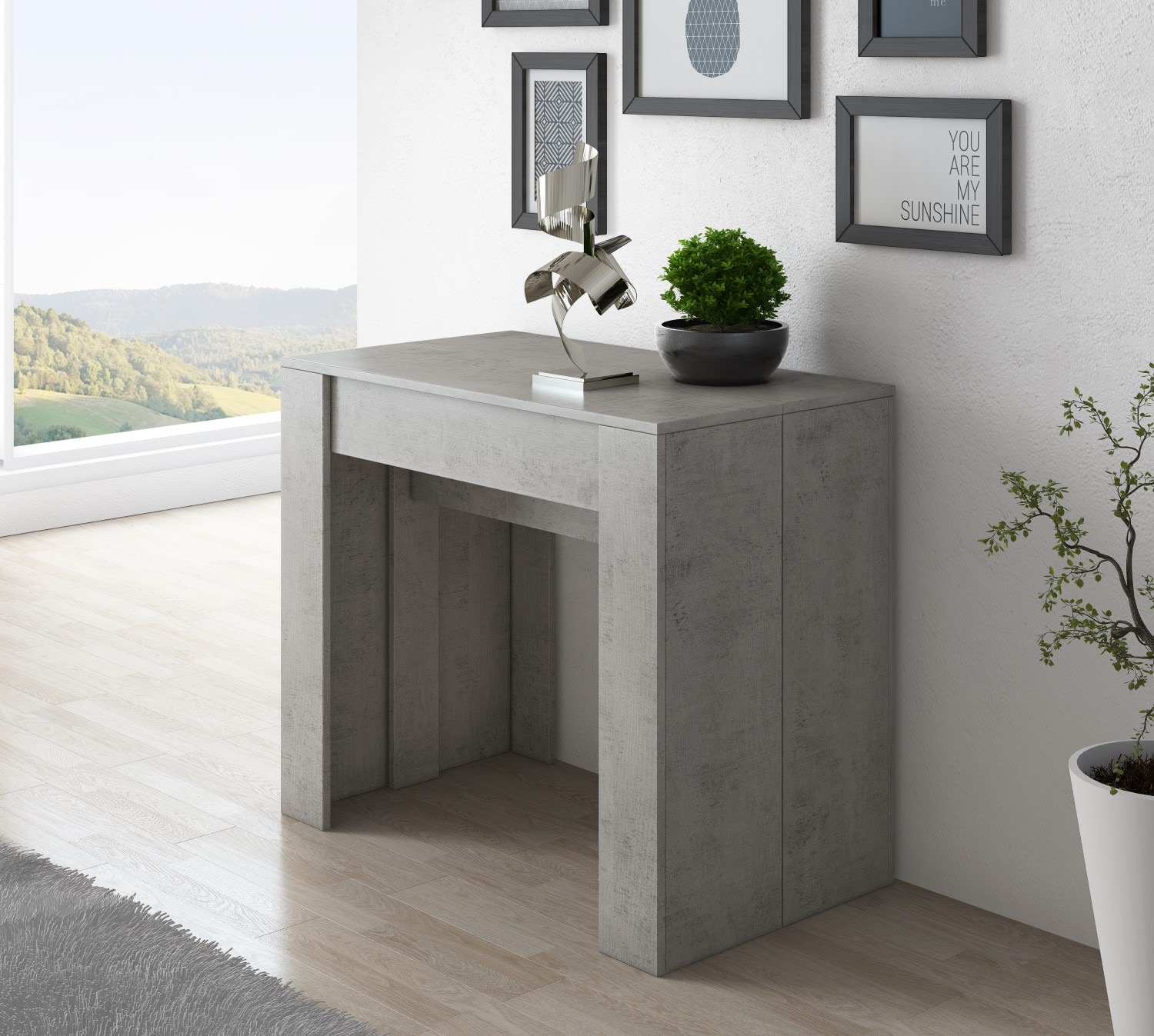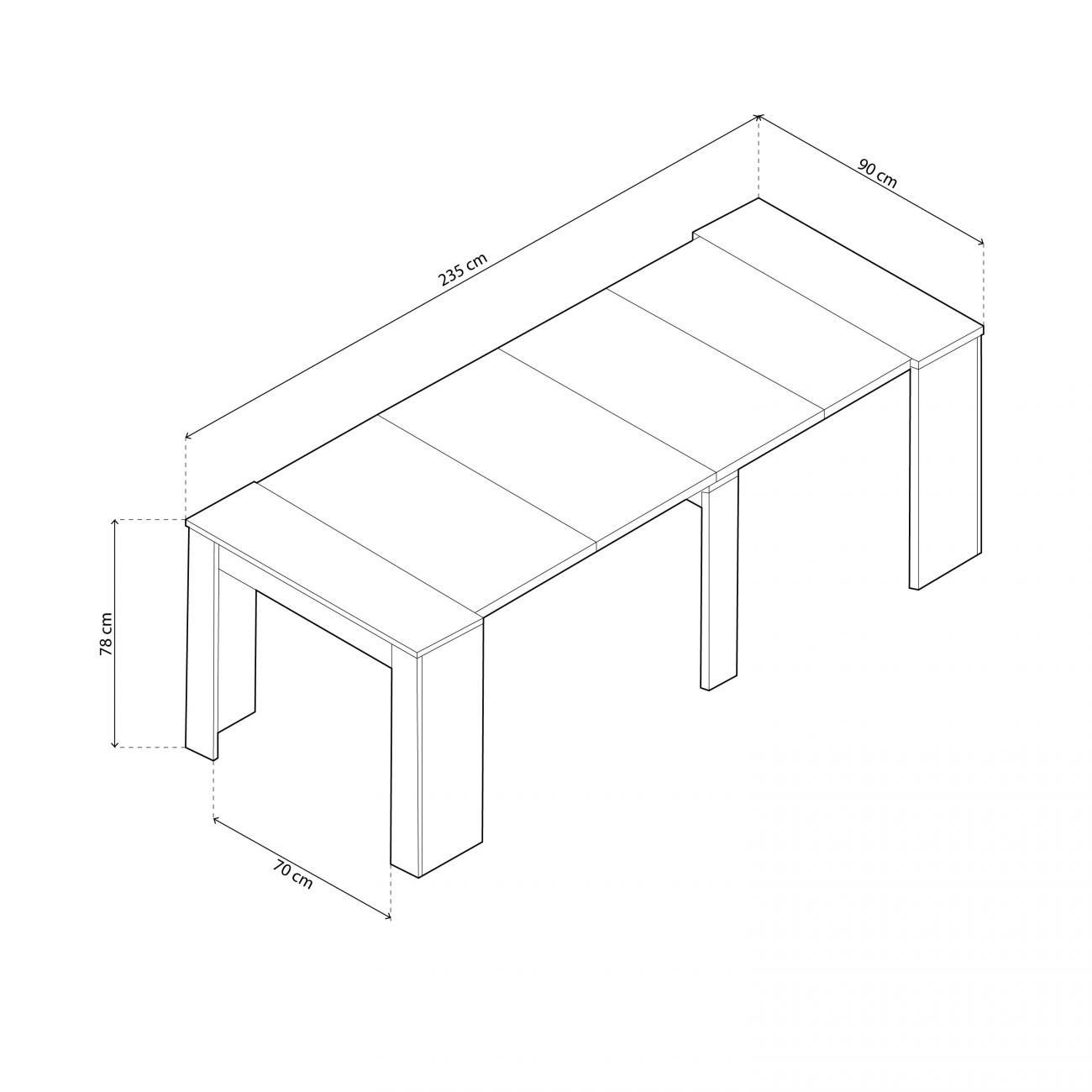 - A mesa de consola extensível Kendra é uma fantástica mesa de jantar extensível com 5 posições, permitindo-lhe estendê-la de 50 cm a 235 cm de comprimento. Graças à sua capacidade de extensão, pode ser utilizada para muitos fins: por exemplo, pode ser utilizada como mesa de corredor, mesa de cozinha ou secretária e, quando tiver toda a família em casa, pode estendê-la ao máximo e utilizá-la como mesa de jantar.
