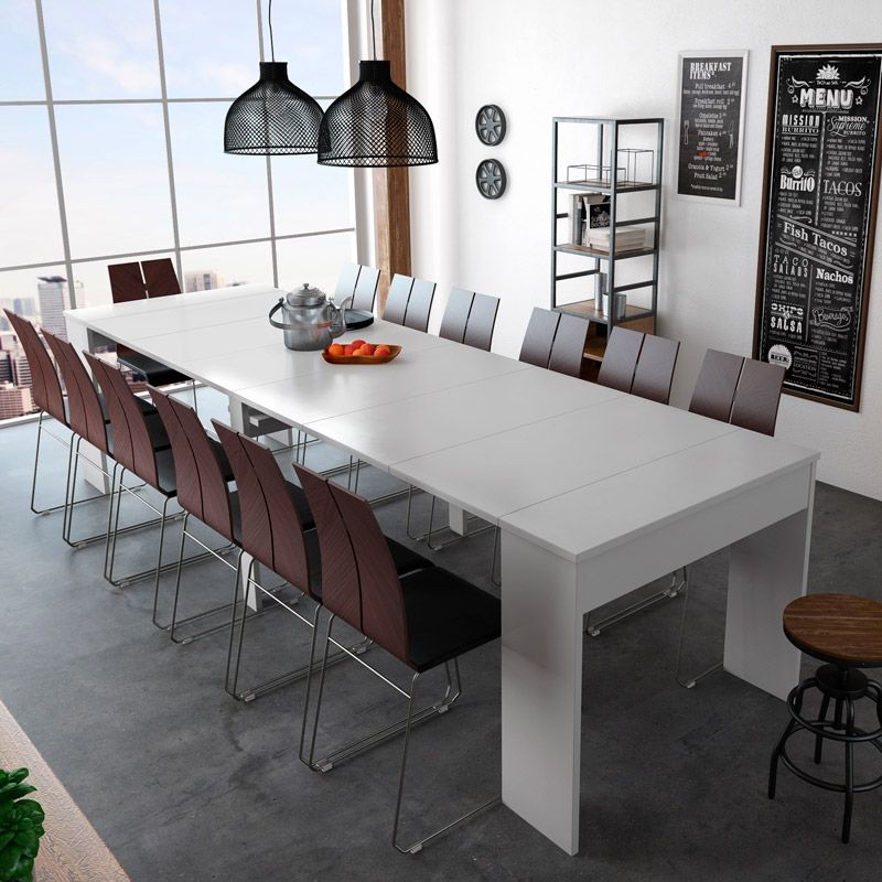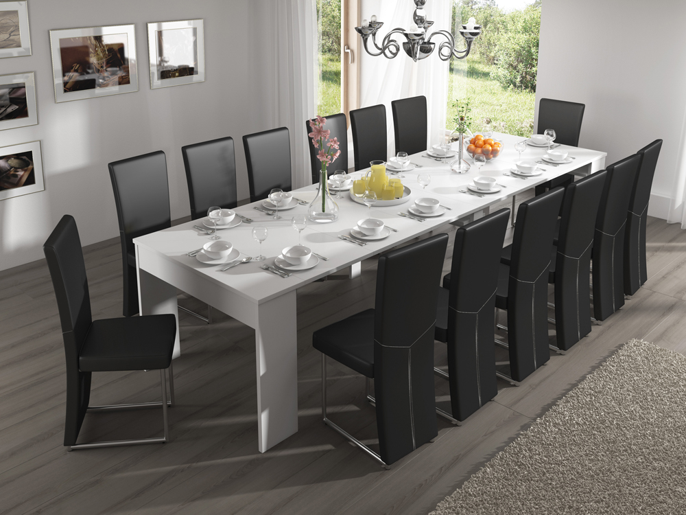 - Quando dobrada, é uma excelente peça de mobiliário decorativo; em diferentes níveis, pode ser utilizada como secretária ou como mesa de apoio. Para além disso, é uma excelente mesa de estar-jantar que pode acomodar até 14 pessoas.