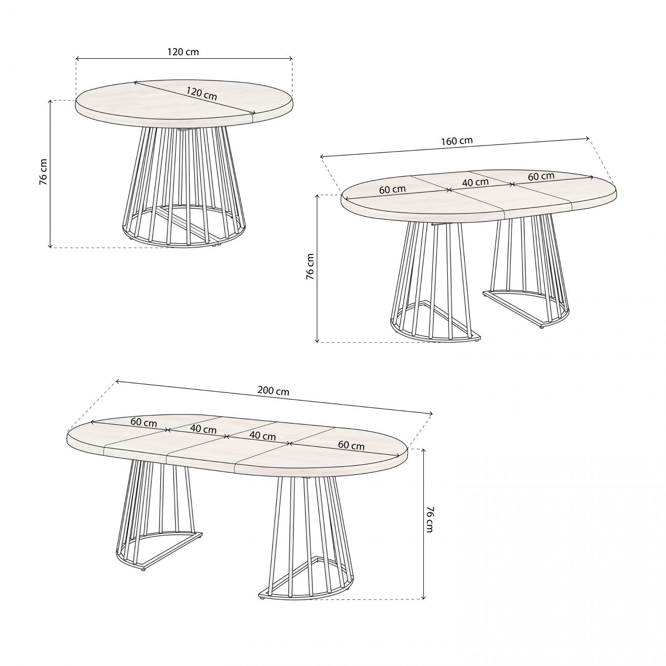 - A mesa é composta por uma prancha de madeira e duas peças extensíveis de 40 cm de comprimento cada, que lhe permitirão estender a mesa até 200 cm de comprimento. Proporciona uma imagem visual limpa devido à sua simplicidade e resistência devido à estrutura metálica que suporta o tampo da mesa.