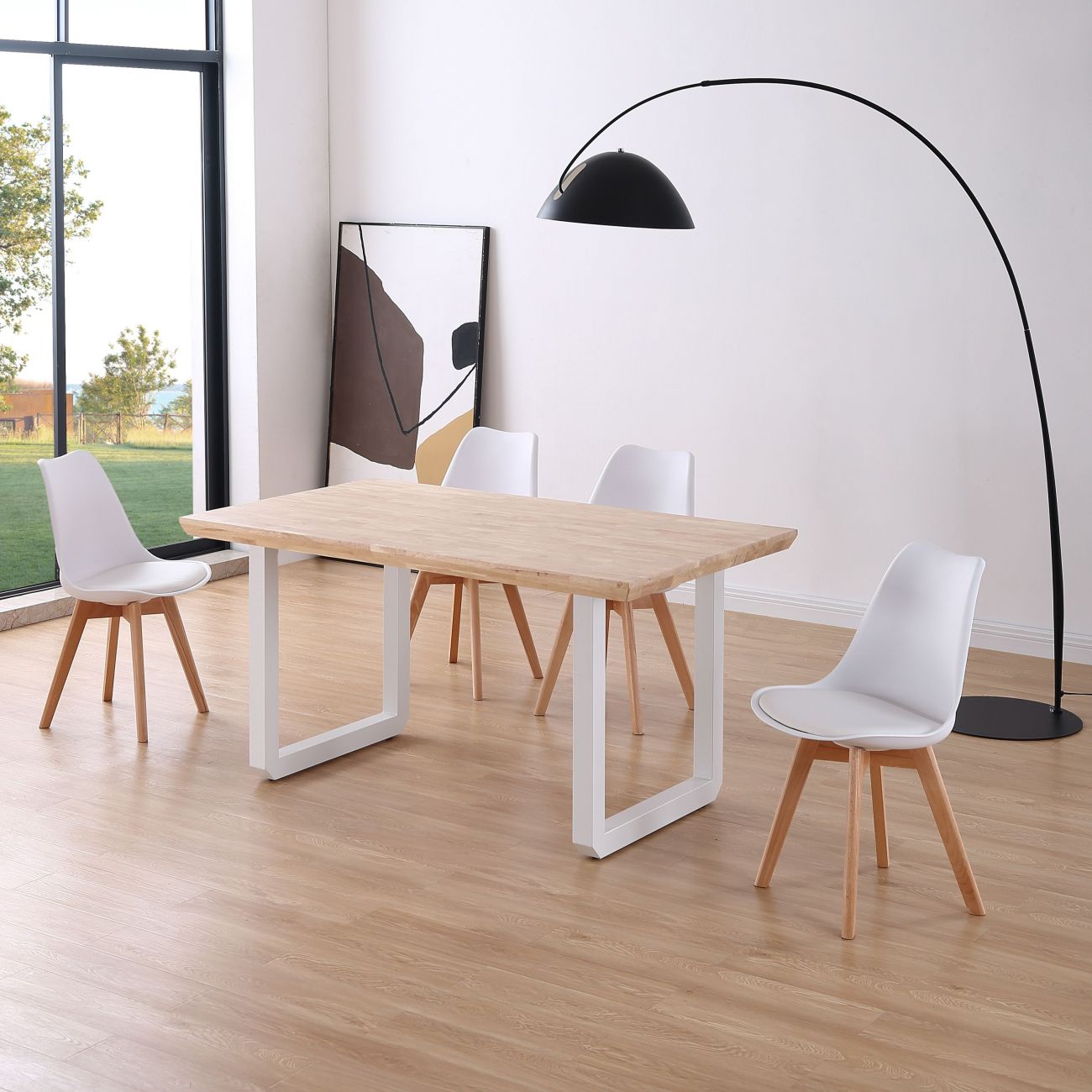 - É uma mesa ampla e resistente que oferece o calor da madeira de carvalho juntamente com a resistência do mesmo material. Acompanhada pelo metal robusto das pernas.