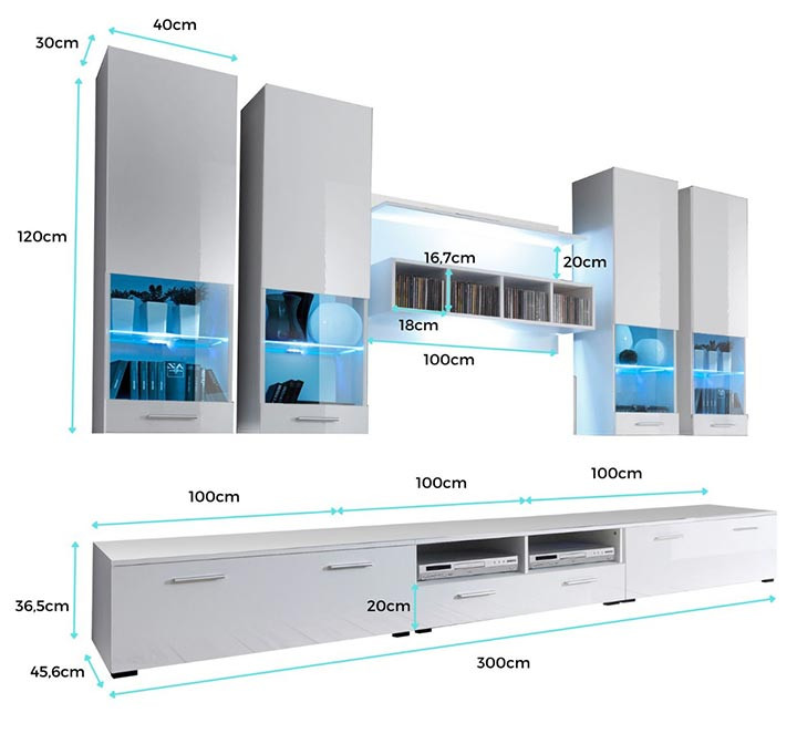 - 3 móveis inferiores de 100 x 36 x 45,6 cm cada