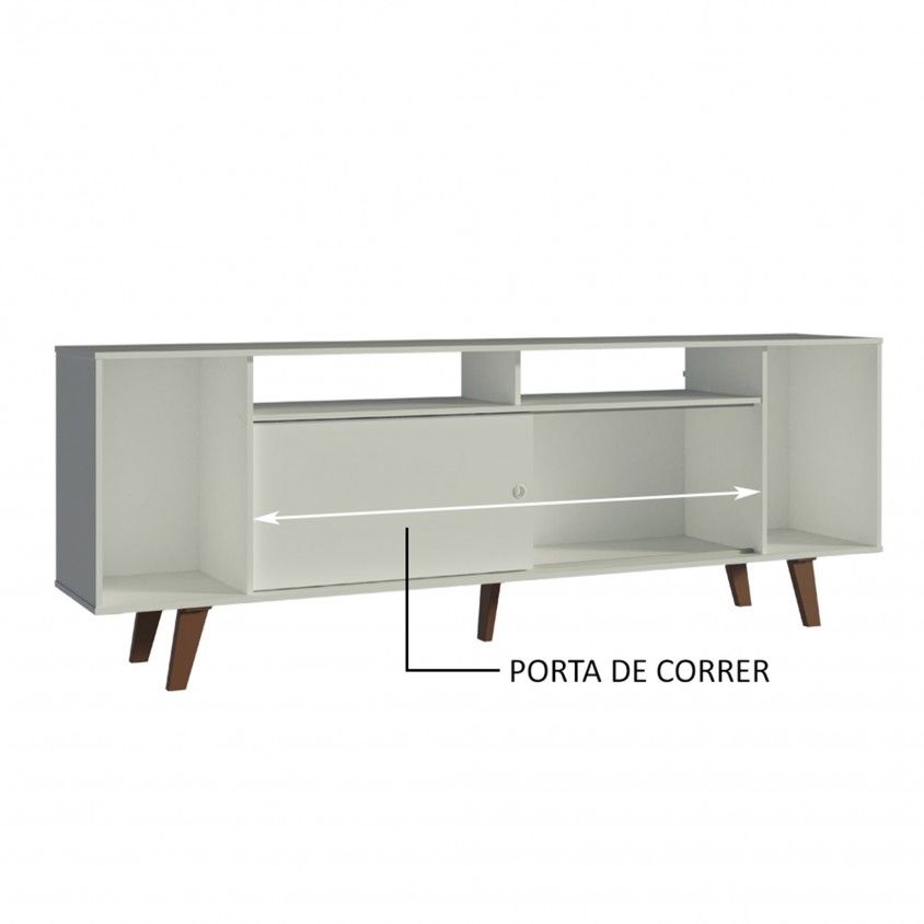 - Possui nichos abertos e 1 fechado com porta de correr que permite fechar o lado esquerdo ou direito