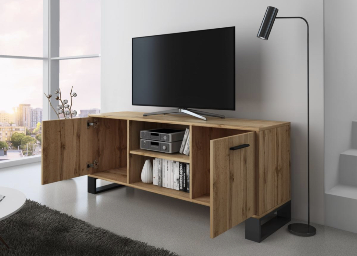 Um movel de tv modermo e de estilo rustico ideal para a sua sala de estar ou de jantar.