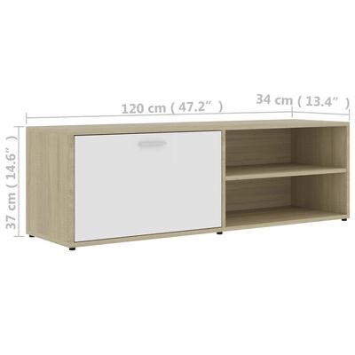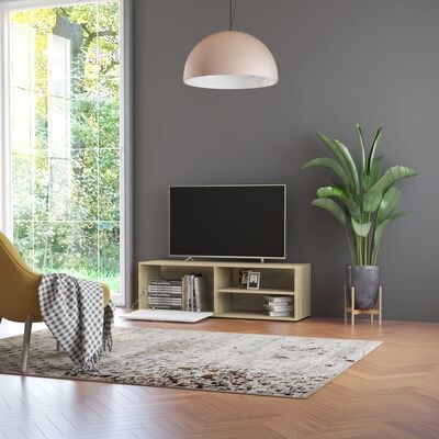 O móvel Hi-Fi é feito de contraplacado, sendo estável e durável. Possui um amplo espaço de arrumação para o seu leitor de DVD, consola de jogos, recetor digital ou suportes multimédia. Este móvel de TV com um design bem concebido será um complemento ótimo para o seu quarto ou sala de estar. O suporte de TV é fácil de montar e limpar com um pano húmido.