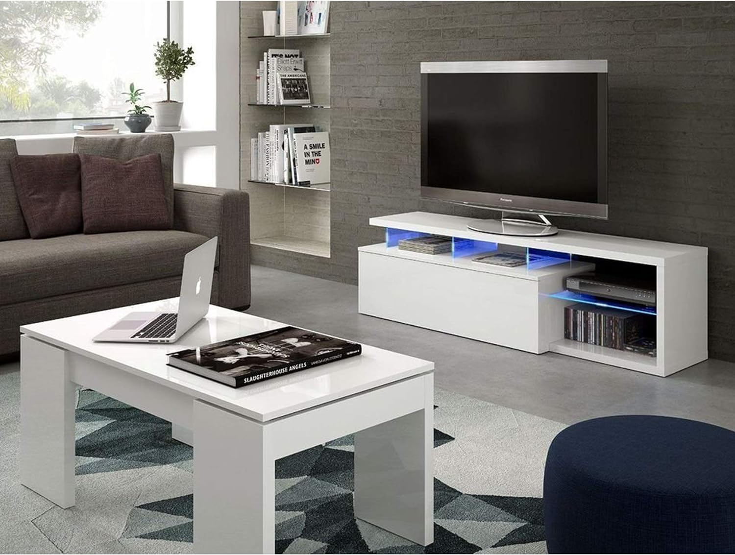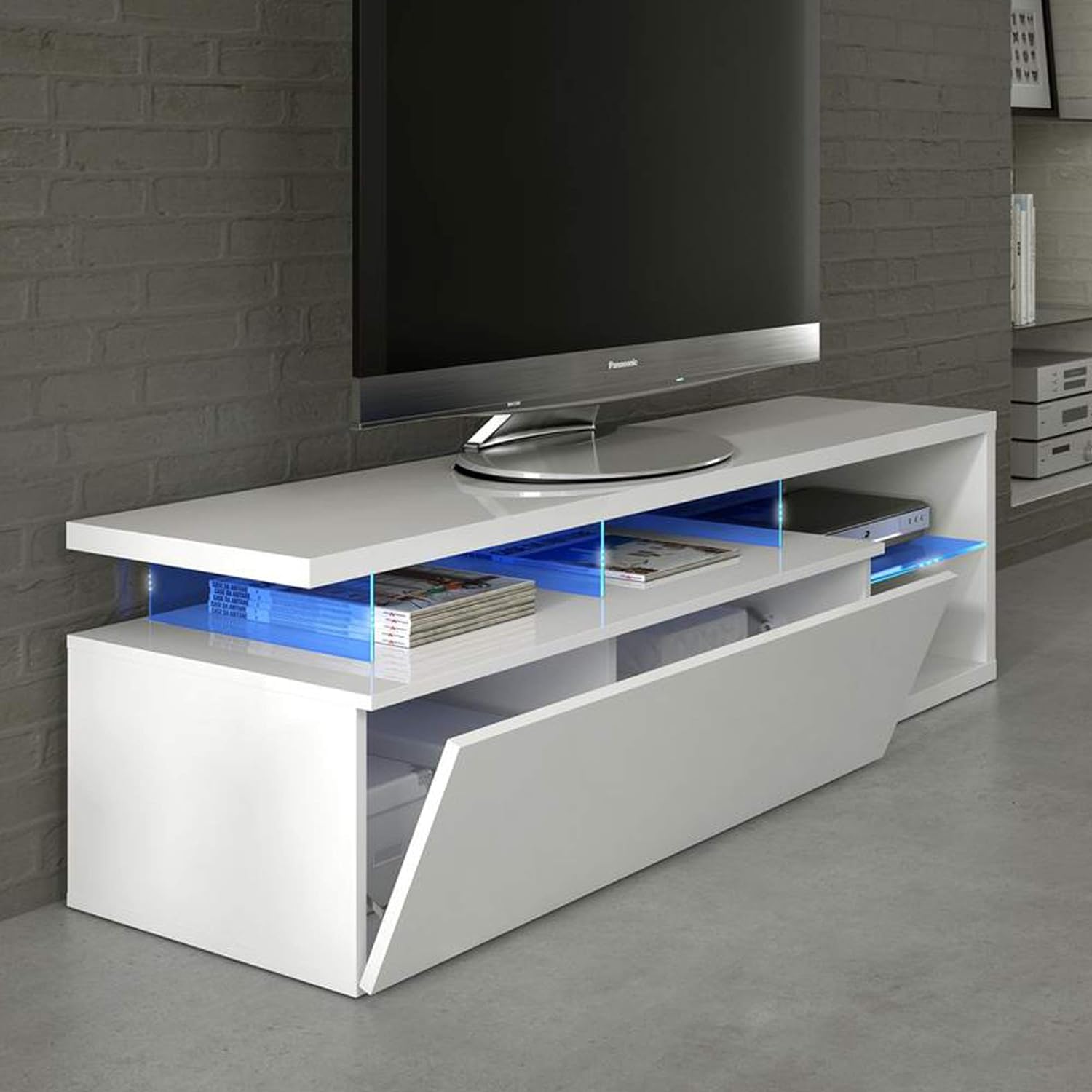 - Móvel TV com sistema de iluminação LED integrado nos painéis de vidro