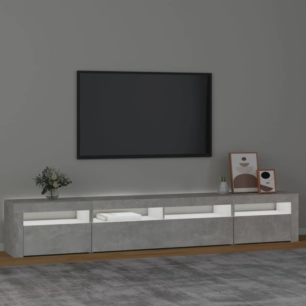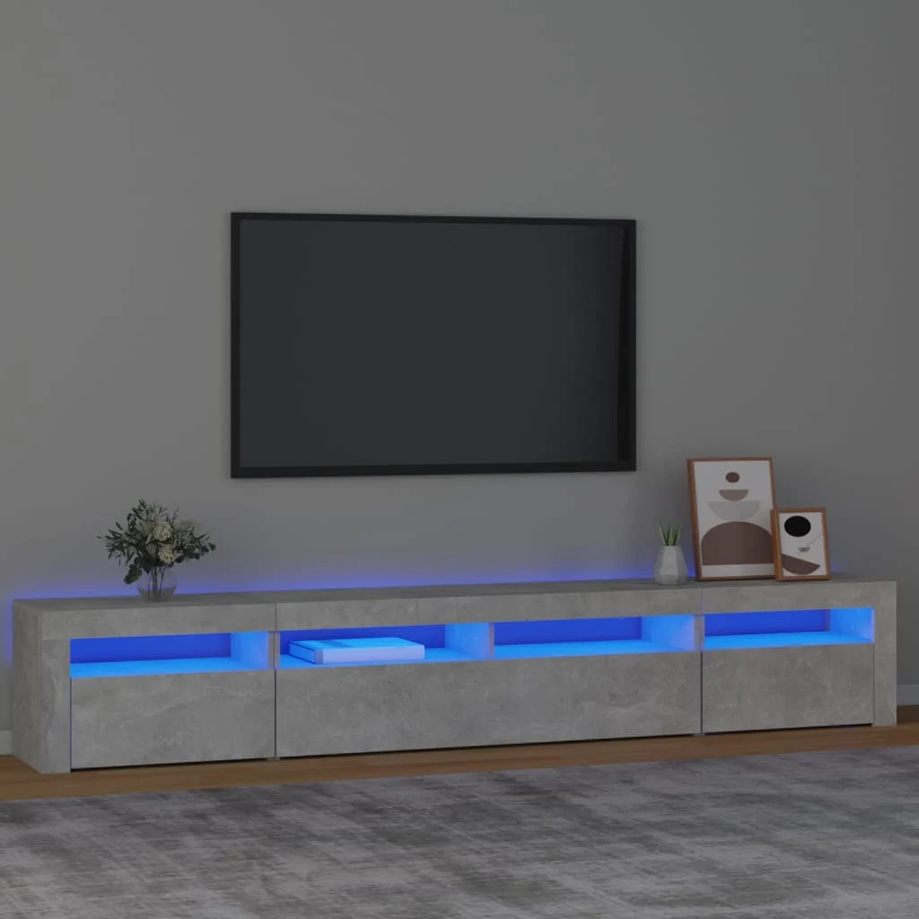 Com um design moderno e prático, este móvel de TV com luzes LED torna-se definitivamente um ponto focal na sua divisão.