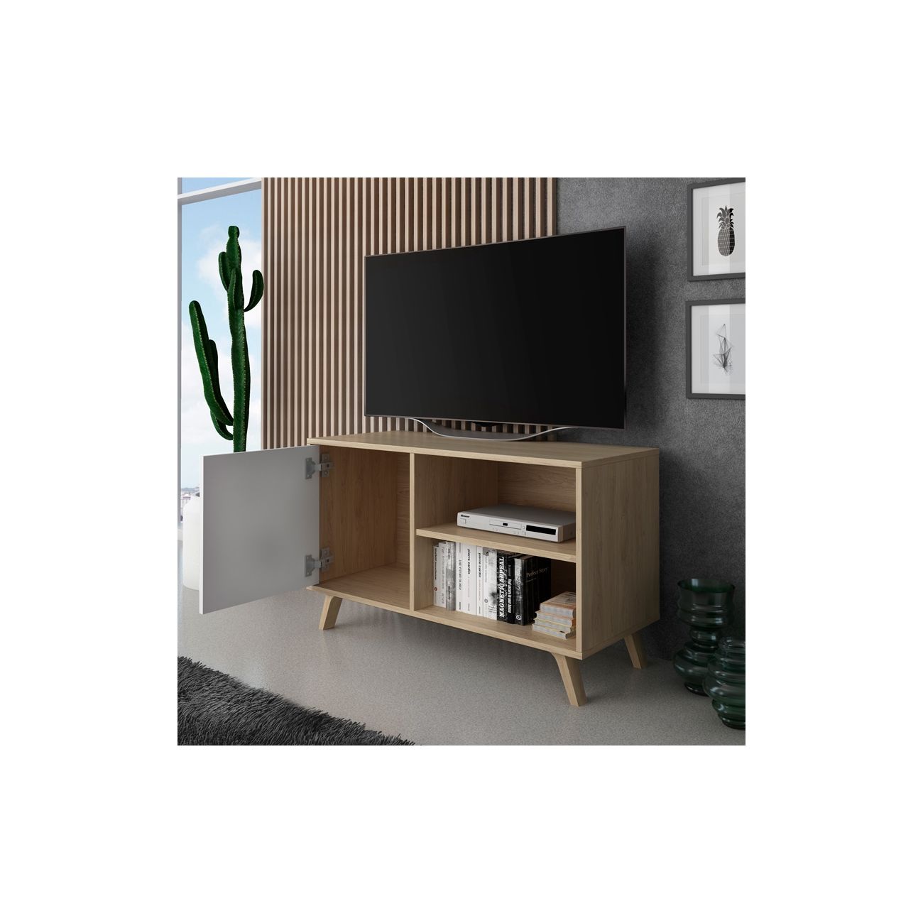 - Móvel de TV de estilo nórdico com dimensões reduzidas