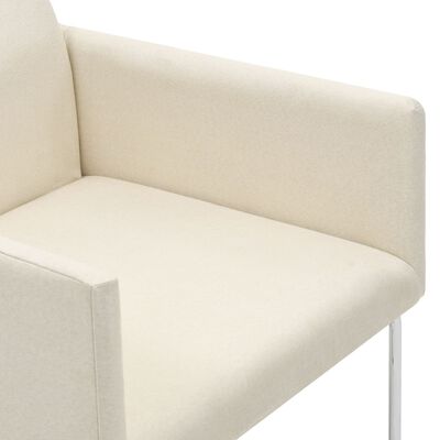 As cadeiras têm uma estrutura robusta de aço cromado e são estofadas com tecido macio de poliéster. Os assentos e encostos densamente acolchoados em conjunto com os apoios de braços ergonómicos proporcionam o máximo conforto de assento.