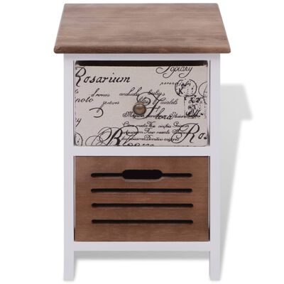 Estas compactas mesas de cabeceiras foram fabricadas habilmente. Cada mesa de cabeceira tem 2 gavetas, que fornece um amplo espaço para manter os objetos mais pequenos organizados e ao alcance. A impressão em estilo vintage-rural adiciona charme rural à mesa de cabeceira.