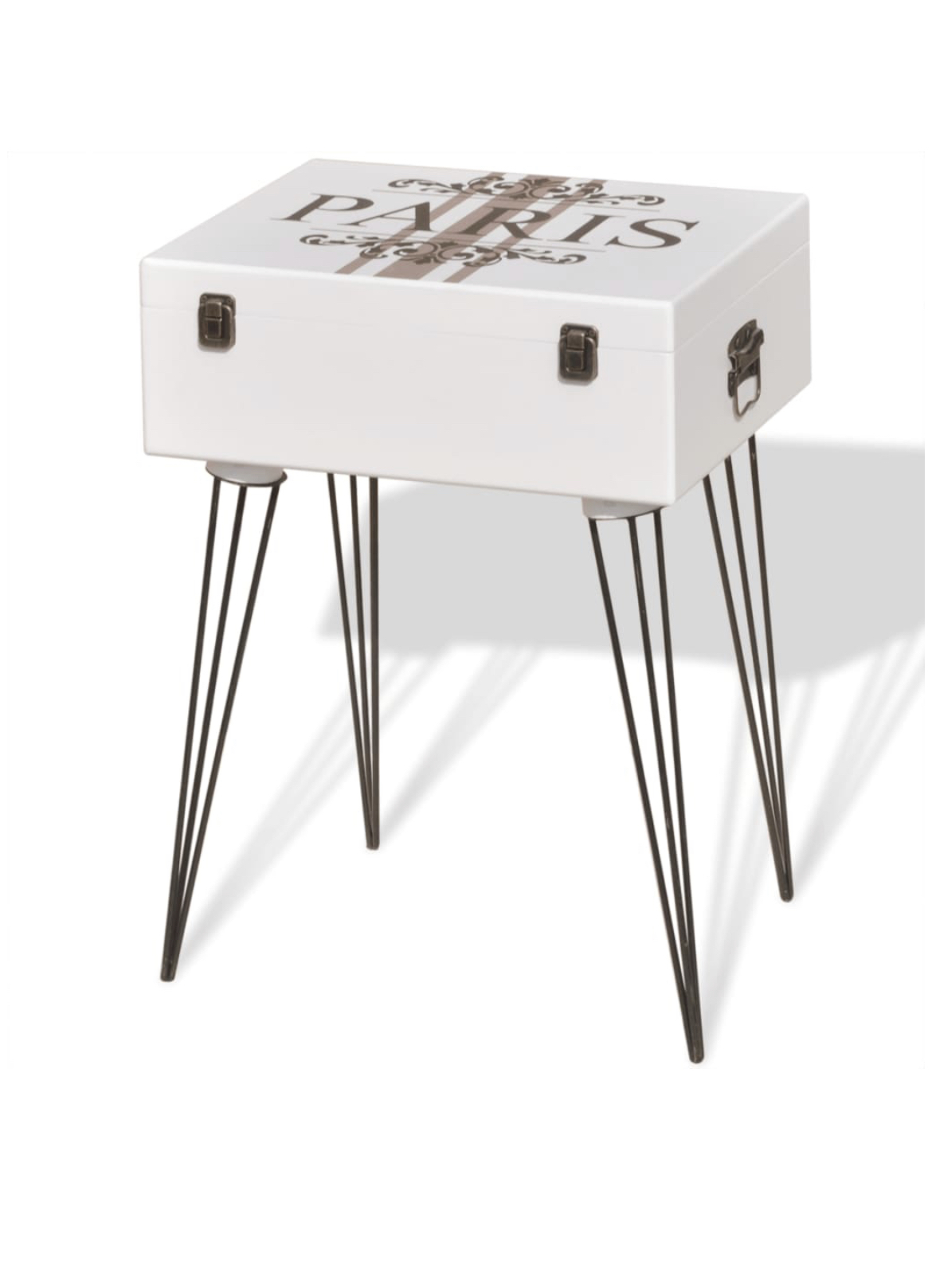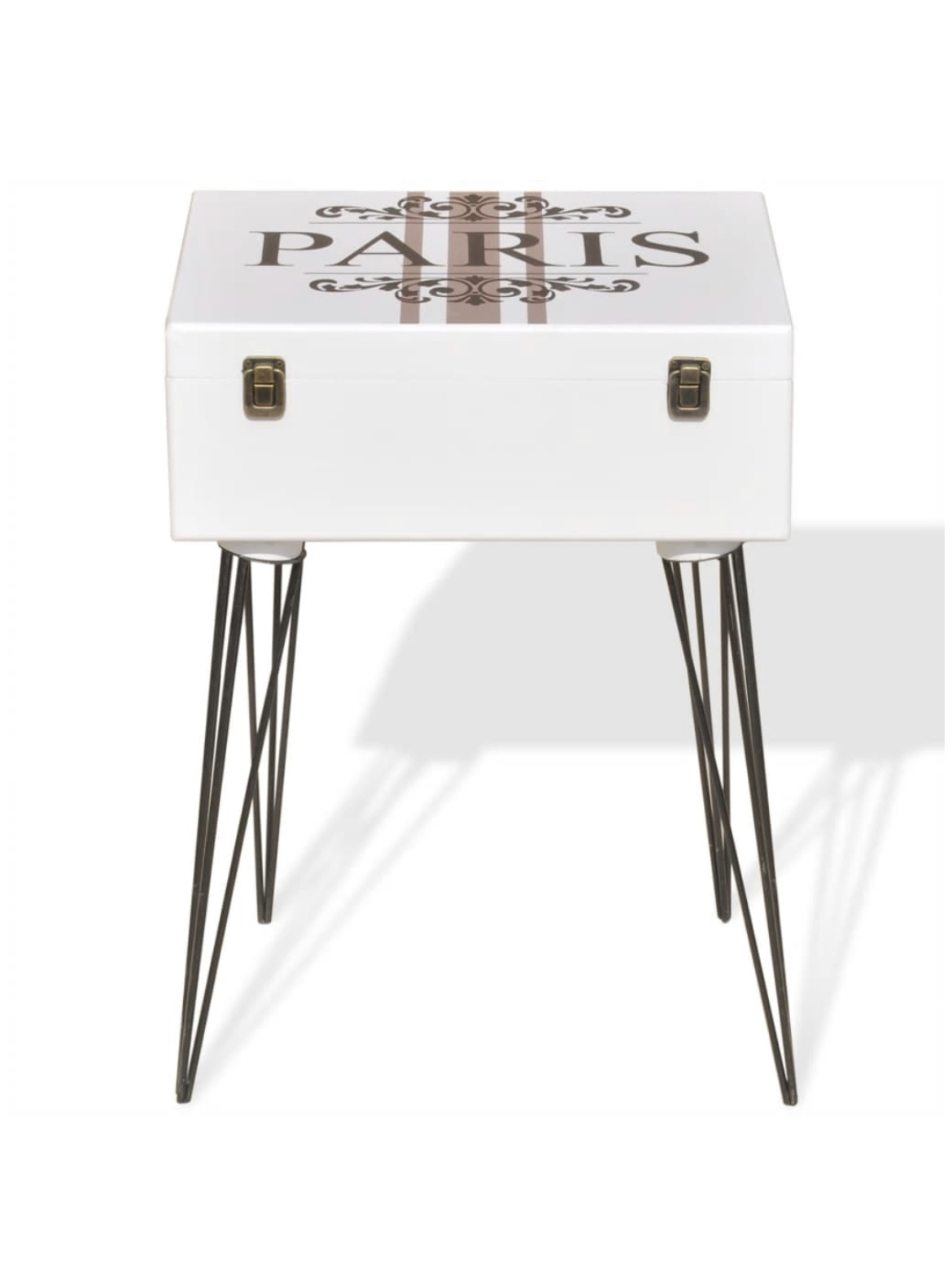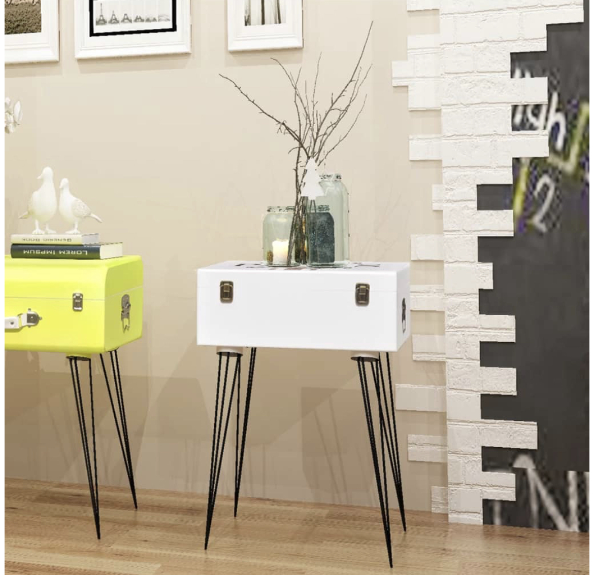 Estes móveis de apoio serão complementos práticos e altamente decorativos para a sua área de estar, sala de estar ou quarto. Os tampos retangulares são ideais para expor objetos decorativos, molduras ou até mesmo vasos com plantas e dentro das malas existe um amplo espaço onde poderá manter todos os tipos de artigos mais pequenos organizados e ao seu alcance. Feitas em MDF alta qualidade, as mesas de apoio em formato de mala são muito resistentes e duráveis. As pernas em pino de aço aumentam a robustez e a estética visual. A montagem é muito fácil.