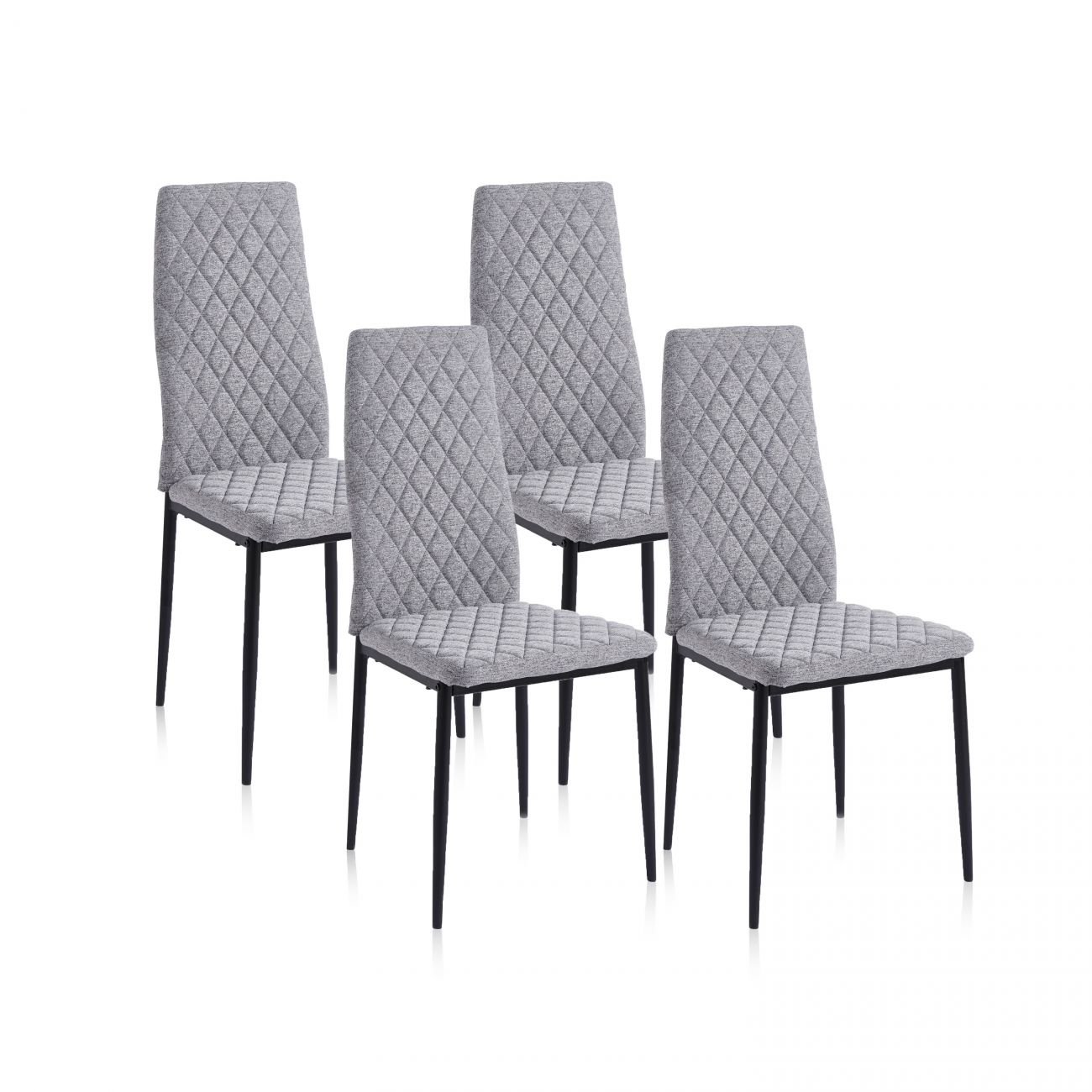 • As pernas metálicas não só proporcionam um contraste moderno, mas também garantem a robustez e durabilidade das cadeiras. O seu design contemporâneo com padrão de diamante torna-os um complemento muito atraente para qualquer sala de jantar.