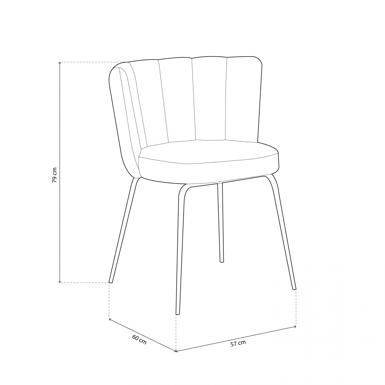 - Medidas: 57 cm (largura) x 60 cm (comprimento) x 79 cm (altura)