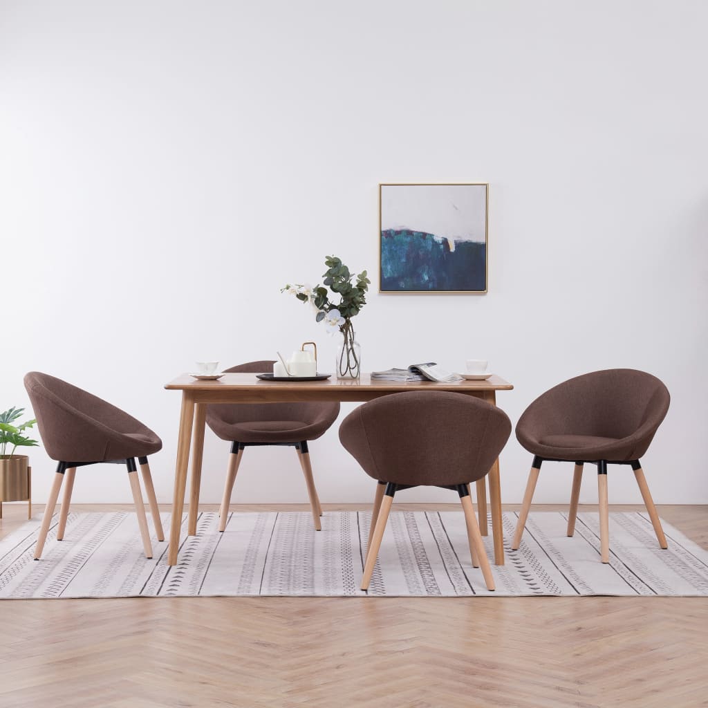 Estas cadeiras de jantar possuem um design elegante e contemporâneo, que irá sem dúvida destacar-se em qualquer ambiente.Com enchimento de espuma e estofos em tecido macio ao toque, poderá desfrutar de um conforto de assento ideal. Suportadas por pernas em madeira de faia maciças e estrutura de metal, estas atraentes cadeiras de jantar são duráveis e esteticamente agradáveis.A entrega inclui 4 cadeiras de jantar.