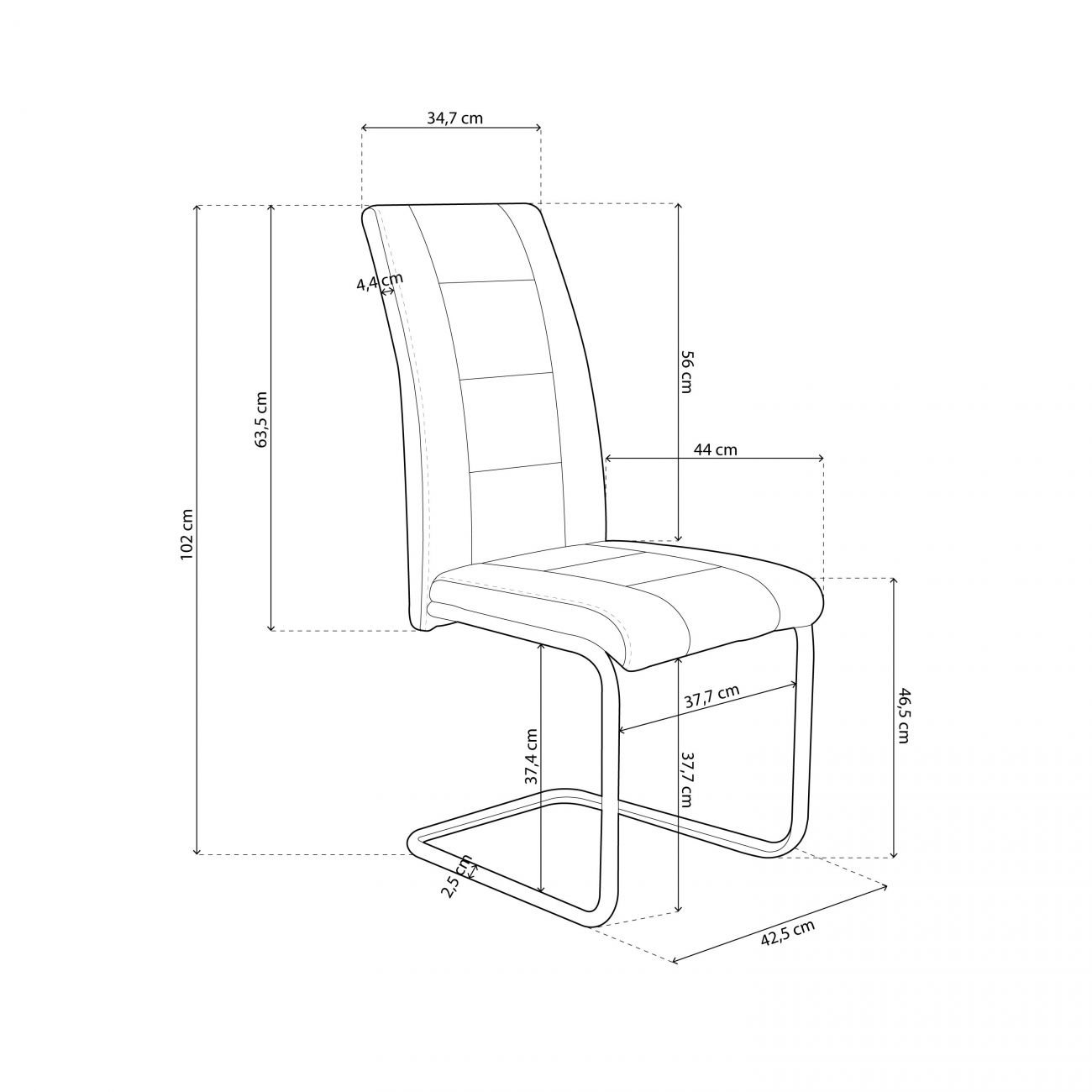 - Costuras decorativas no assento e no encosto