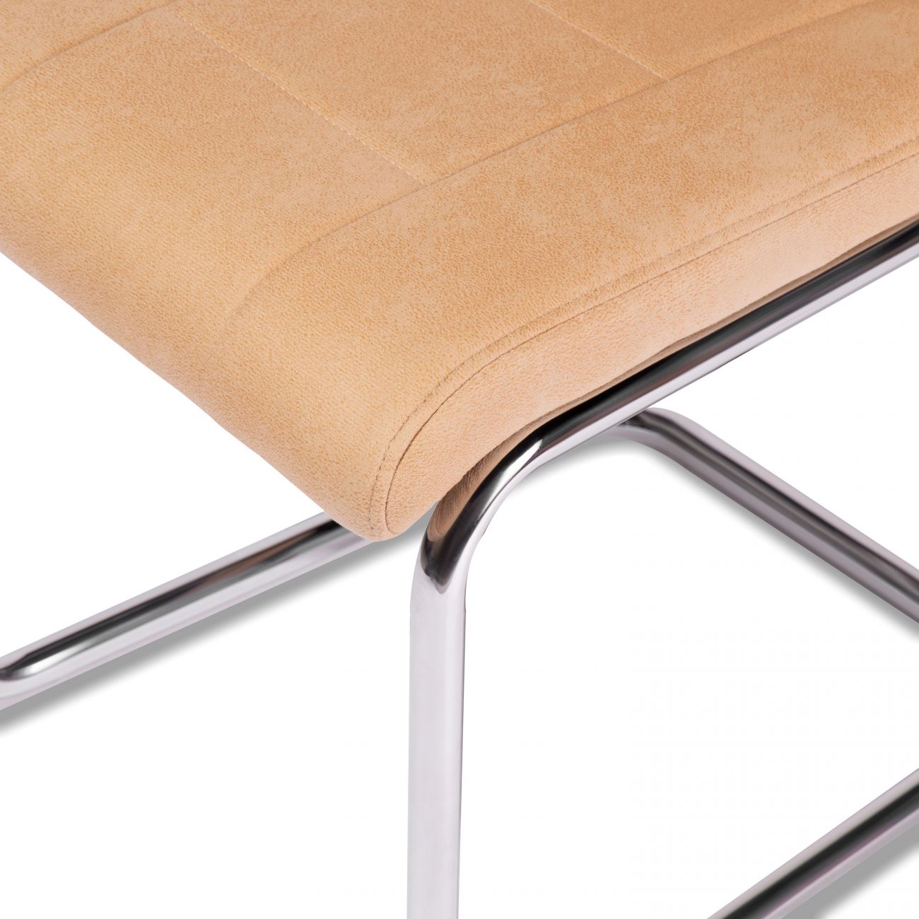 - É uma cadeira de jantar moderna com detalhes ligeiramente retro que mudará completamente o aspeto da sua sala de jantar. A sua estrutura cromada ao estilo dos anos 60 não passa despercebida, nem a costura decorativa no assento e no encosto, que confere à peça de mobiliário um ar de outra época.