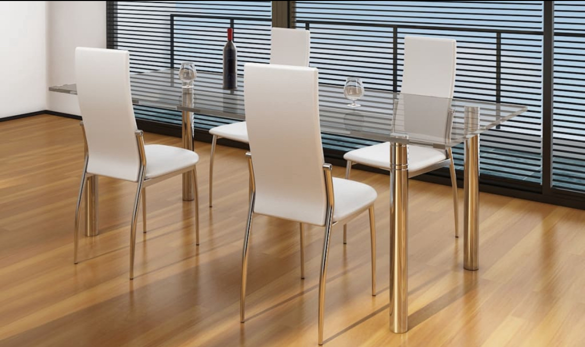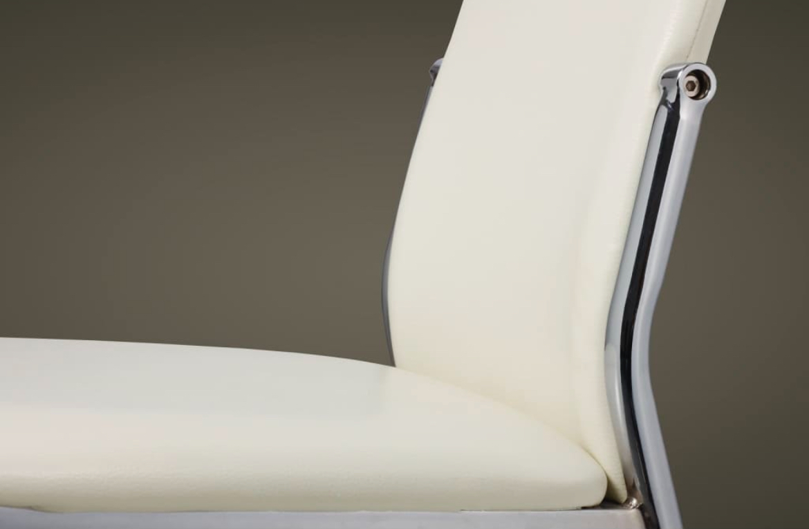 Estas 4 cadeiras de jantar modernas têm um design ergonómico para aumentar o conforto. Estas cadeiras de jantar confortáveis têm uma construção de alta qualidade e robusta. Os pés são feitos de cromo estável e o assento é feito de couro sintético durável que pode ser facilmente limpo.