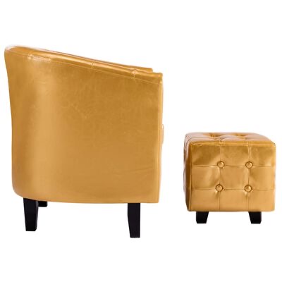Este conjunto com cadeira e banco criará um ambiente elegante em todas as áreas de espera e recepção, escritórios e áreas residenciais privadas. Com os seus perfis adornados e tachados e braços graciosamente curvados, esta poltrona irá adicionar um toque de luxo, classe e estilo a qualquer interior.O assento grossamente acolchoado é confortável, enquanto a estrutura de madeira é resistente e durável. O estofamento de couro artificial de qualidade é fácil de limpar e resistente.