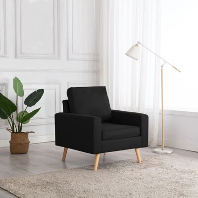 Este sofá foi estofado com um tecido suave ao toque e possui almofadões espessamente acolchoados, oferecendo-lhe um espaço confortável onde poderá relaxar. A estrutura de madeira proporciona suporte e estabilidade a toda a construção.