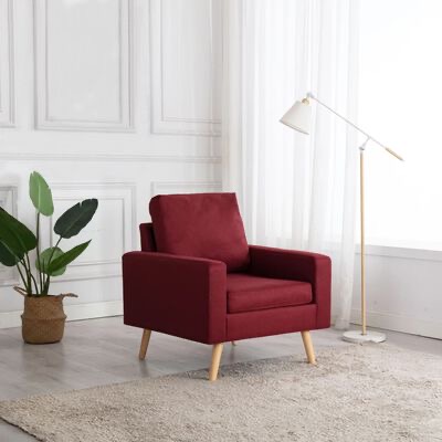 Este sofá foi estofado com um tecido suave ao toque e possui almofadões espessamente acolchoados, oferecendo-lhe um espaço confortável onde poderá relaxar. A estrutura de madeira proporciona suporte e estabilidade a toda a construção.
