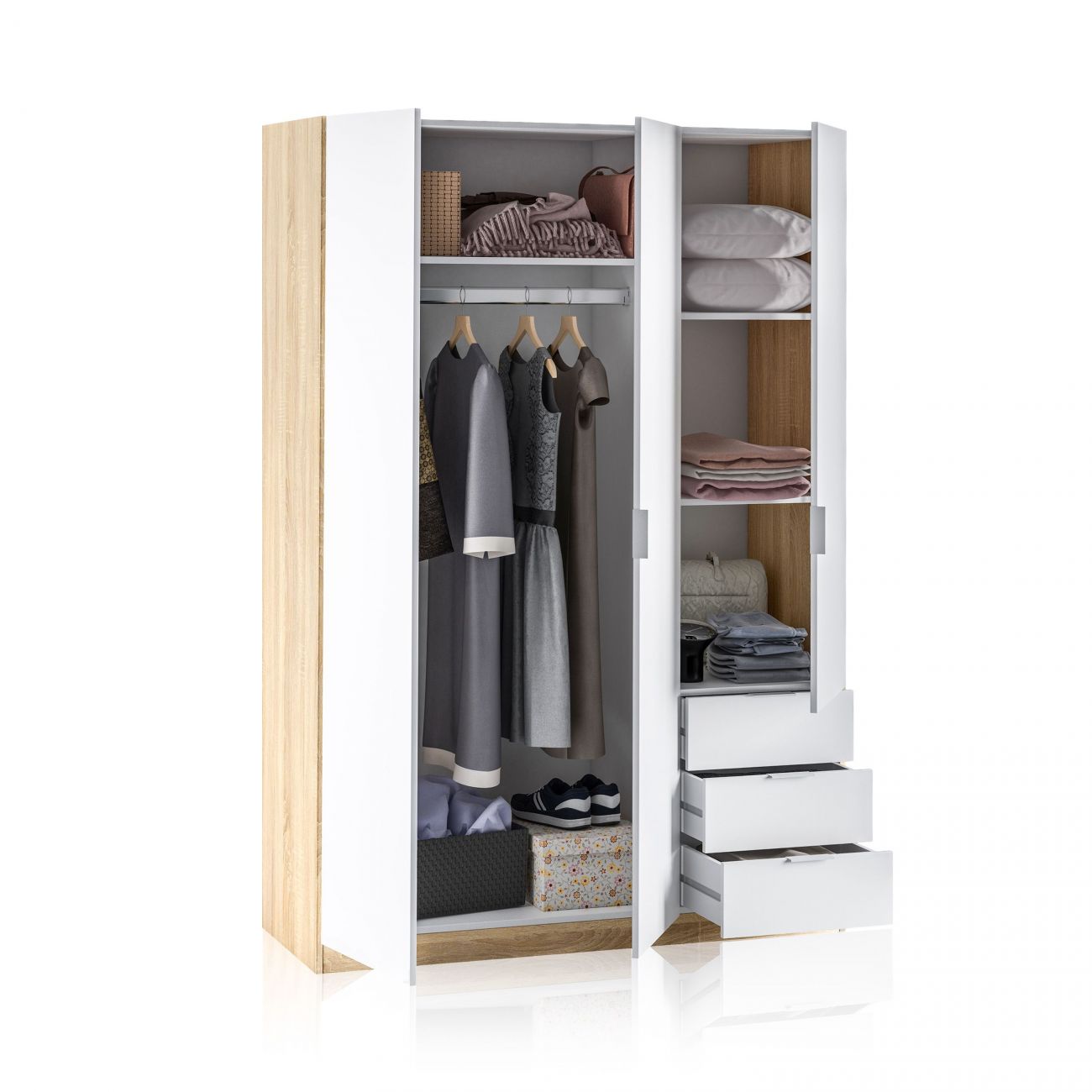 - Roupeiro de tamanho generoso com 3 portas e 3 gavetas não extraíveis