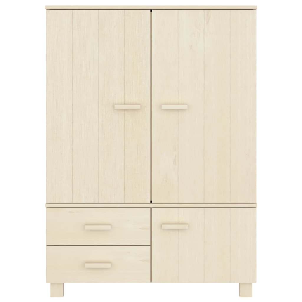 Este guarda-roupa é feito em madeira de pinho maciça, tornando-o estável e resistente. O armário para vestuário possui portas e compartimentos, proporcionando um amplo espaço de arrumação para poder manter as suas roupas e vários outros artigos bem organizados. As gavetas que deslizam suavemente proporcionam um espaço de arrumação adicional e amplo para a sua roupa interior, meias, etc.