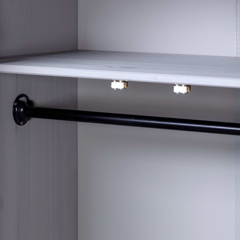Organize e guarde as suas roupas no nosso espaçoso roupeiro com 3 portas. O nosso elegante e prático roupeiro apresenta uma solução de armazenamento versátil até para os quartos mais pequenos.O armário para roupas possui 4 prateleiras fixas para guardar e organizar sapatos, agasalhos, jeans, bonés, bolsas etc. O grande compartimento está equipado com um varão para que possa pendurar casacos, vestidos etc. Feito de pinho maciço, o guarda-roupa é resistente e durável.