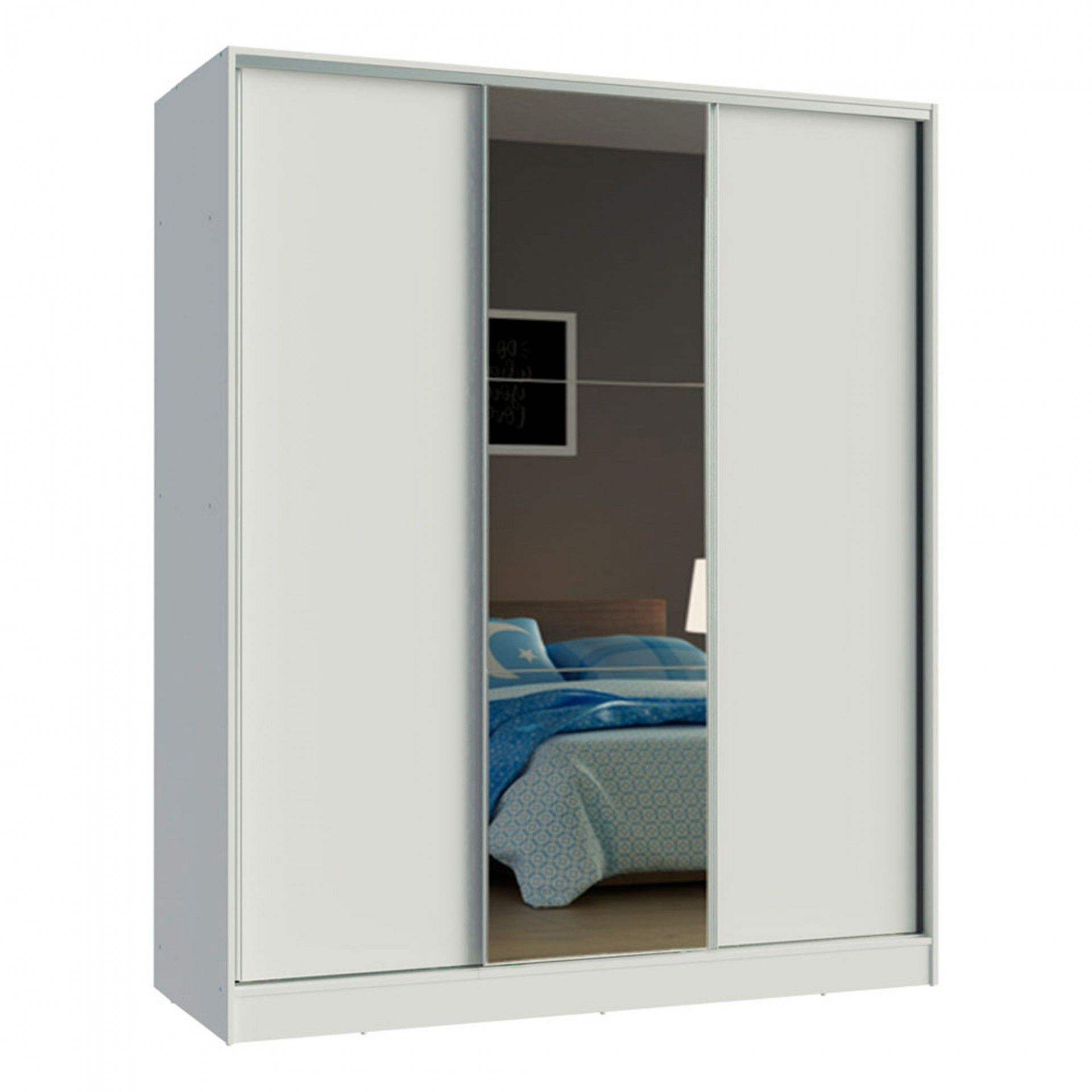 - Com 3 portas de correr, uma delas revestida com espelho tripartido