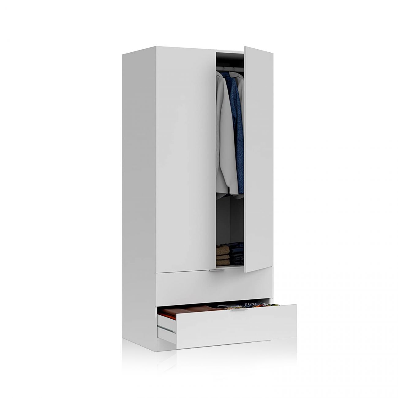 Organização e estilo numa única peça de mobiliário, o roupeiro Hit de 2 portas e 2 gavetas é a escolha perfeita para quem procura funcionalidade sem comprometer o design.
