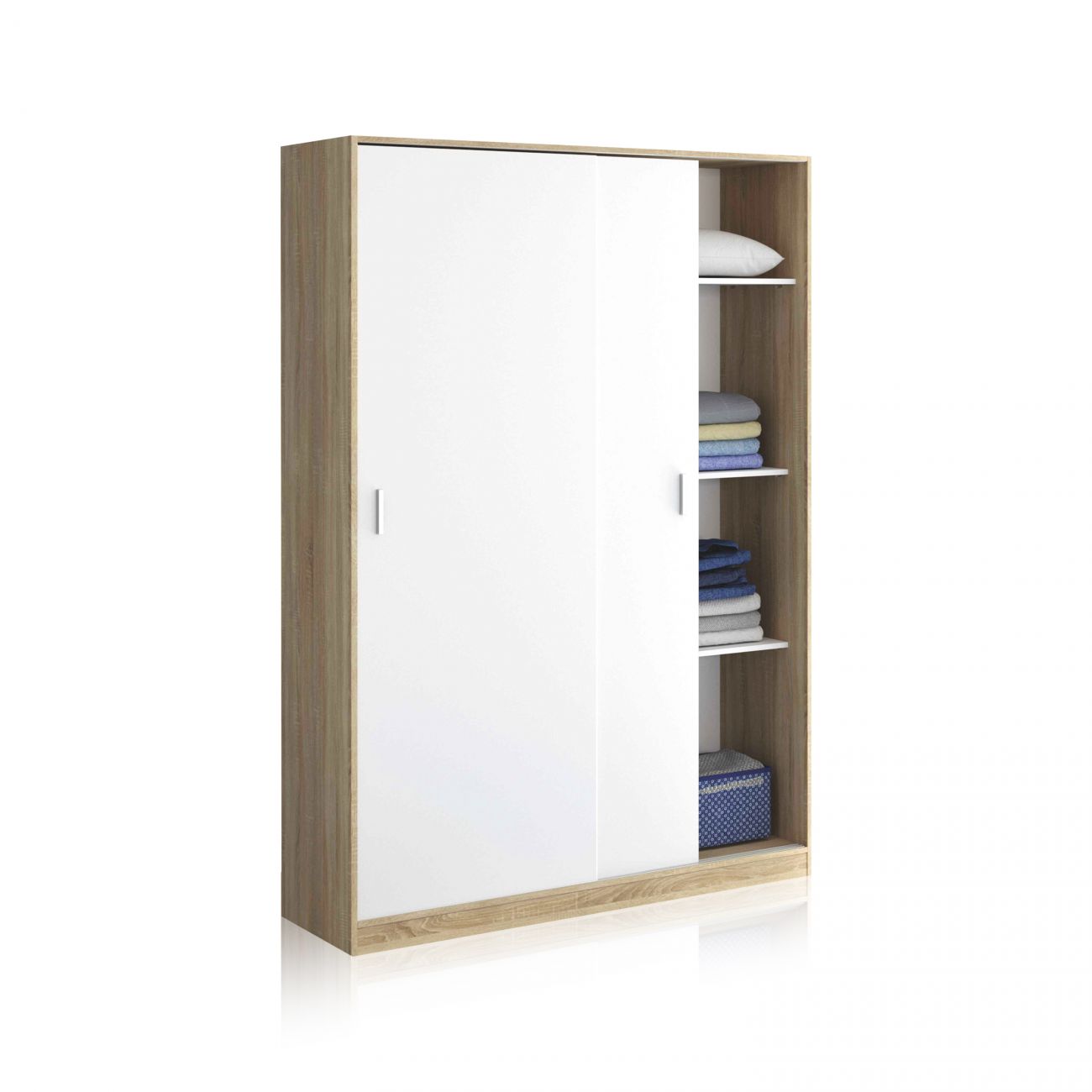 - O roupeiro Maximum de 2 portas de correr com prateleiras é um excelente roupeiro duplo de estilo nórdico com 2 portas de correr, uma zona de bengaleiro e uma unidade lateral com prateleiras.