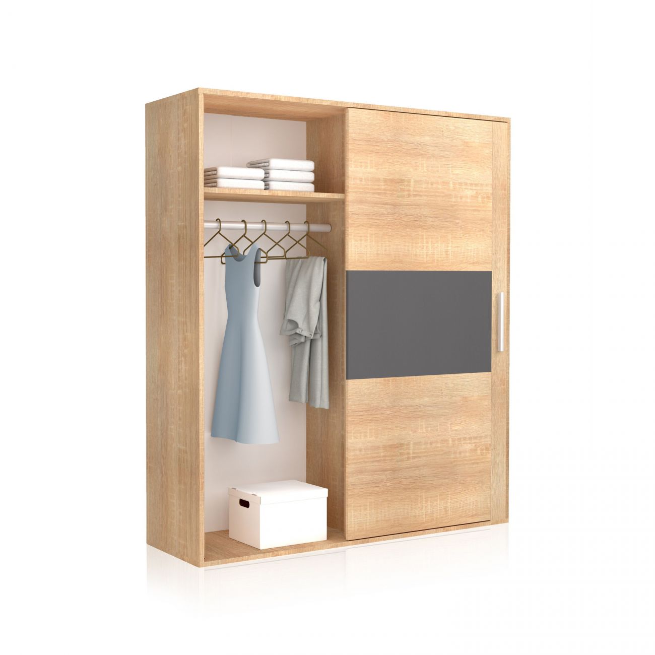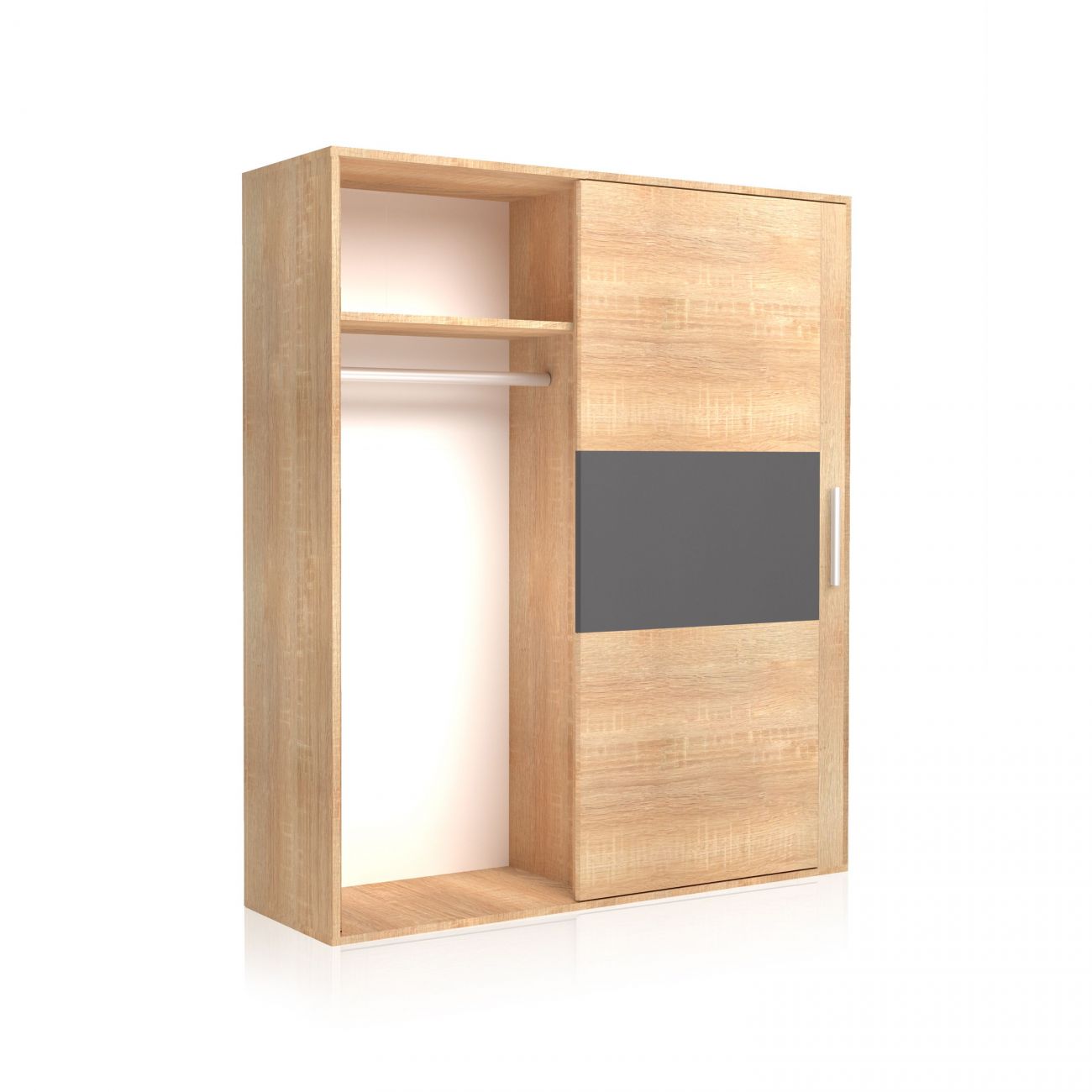 É um roupeiro de tamanho generoso com uma grande capacidade de arrumação, ideal para quartos de estilo contemporâneo. Inclui 2 áreas com uma disposição interior idêntica, o que o torna ideal para casais.
