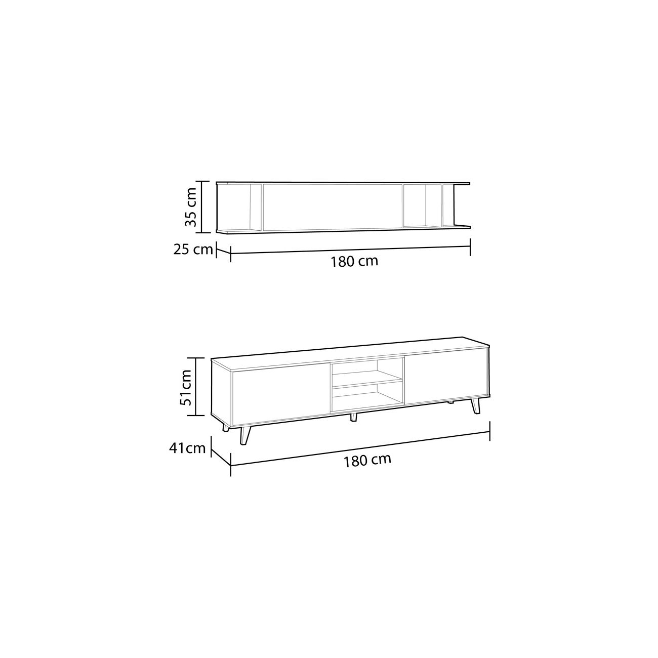 - Medidas: 180cm (largura) x 54cm (altura) x 41cm (profundidade)
