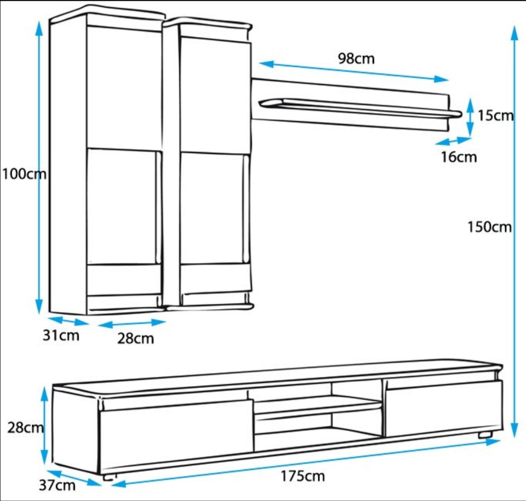 - 1 movel TV: 175 x 28 x 37 cm