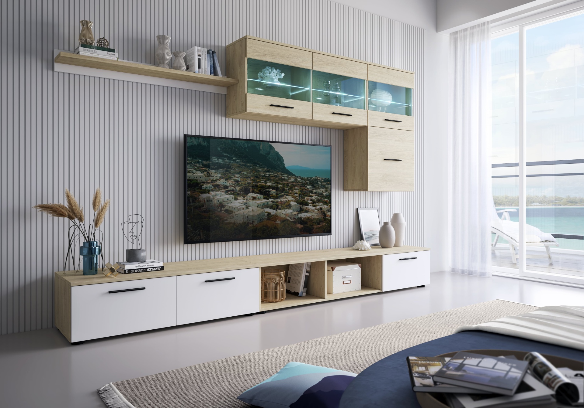 Conjunto de Móveis de design moderno e muito elegantes, composto por módulos individuais que poderá dispor como mais gostar.