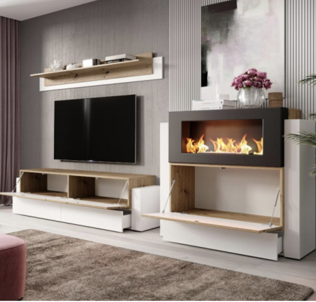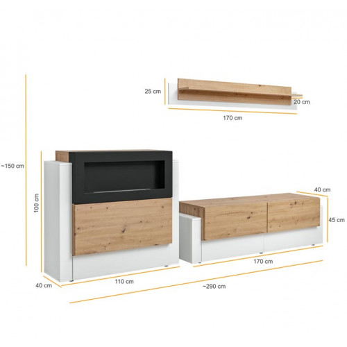 - Medida do aparador com lareira: 110 x 100 x 40 cm