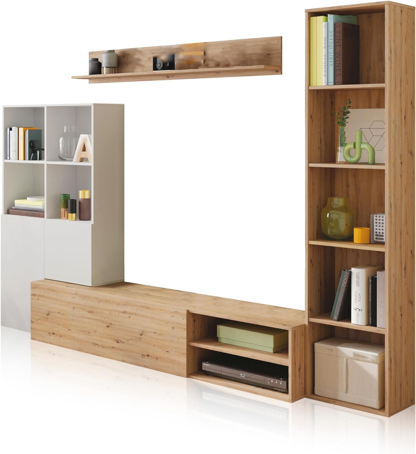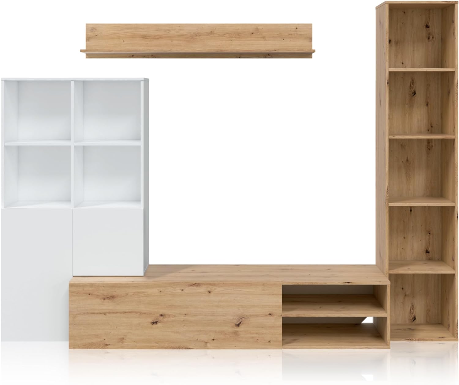 - O móvel de sala de estar Gama é a combinação perfeita entre estilo e funcionalidade. O seu design em branco artik e carvalho nodi dá um toque de elegância e modernidade a qualquer espaço, enquanto a sua estrutura em melamina e MDF garante a sua durabilidade e resistência.