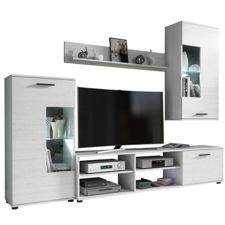 - Este móvel de sala de jantar inclui 4 módulos de arrumação/decoração: um módulo baixo para a televisão, 2 vitrinas/armários e uma prateleira de parede. Todos os elementos estão incluídos no preço. Em suma, um móvel super-equipado para arrumar todos os livros, DVDs, revistas, louça e aparelhos electrónicos de que necessita.