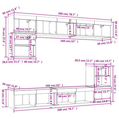 2 x Móvel de TV: 40 x 30 x 30 cm (C x L x A)